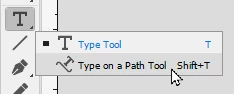 Get your Type on a Path tool. You do that by placing your cursor on the lower-right corner of your regular line tool, where you see the downward-pointing triangle, as shown in the illustration immediately at left.
