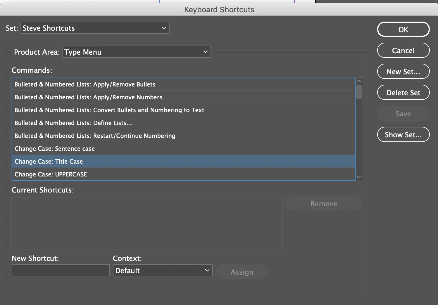 I would like to create a custom keyboard shortcut for Type> change case> title case. Currently this dose not have a shortcut. Can i create my own? Preferably, command+tc