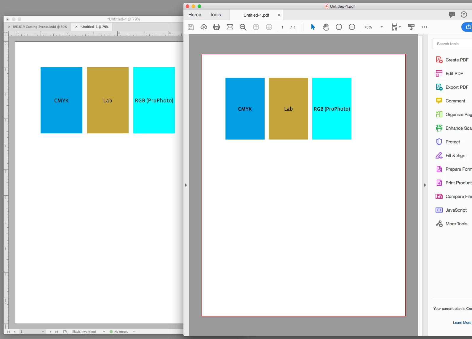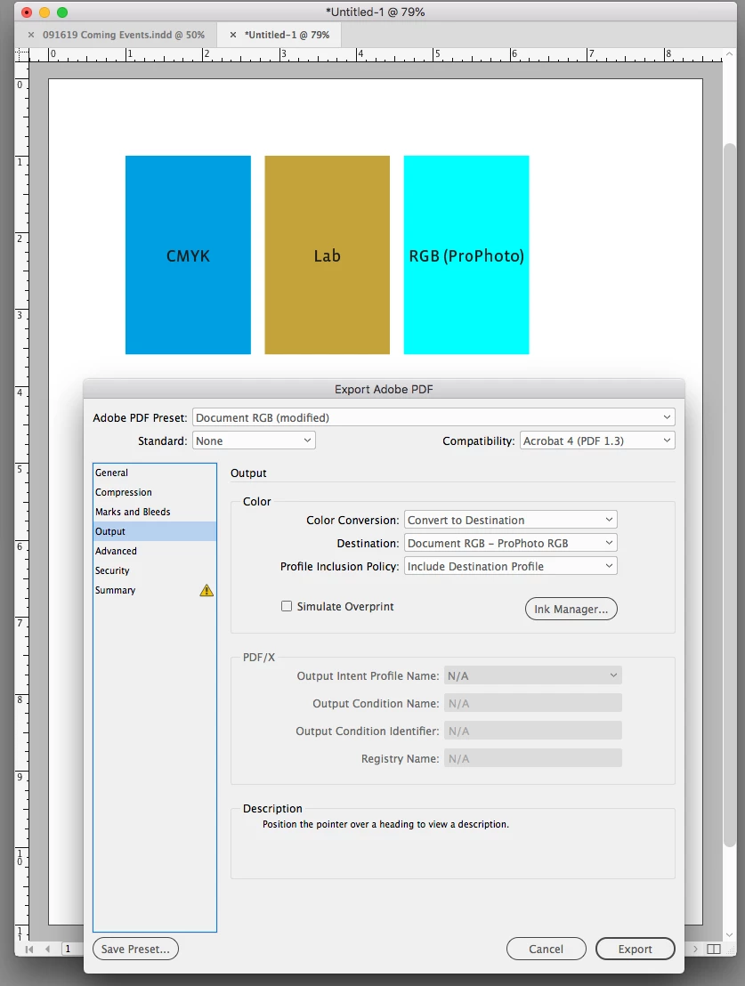 However, when using InDesign, ID manages color, and this does NOT turn off color management in the Canon Driver, and there is no way to select "No Color Management" inside the driver. I don't seem to have the ability to tell ID NOT to manage color. If I select Colorsync in the Canon Driver, I can select an Canon profile or a custom ICC profile, but I don't want to color manage twice and whack out my colors.