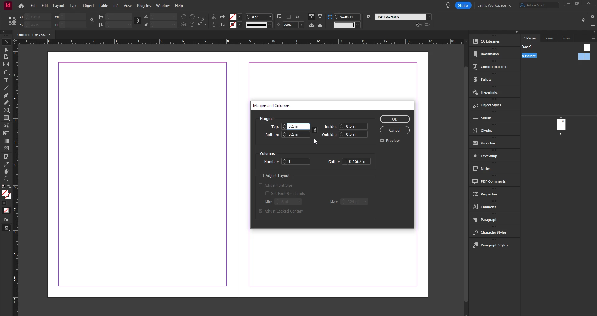 Lately when I open a doc and try to change the margins, the margins don't actually adjust in the file. I think this is a recent problem since I upgraded to the lates ID. Anyone else having this problem?