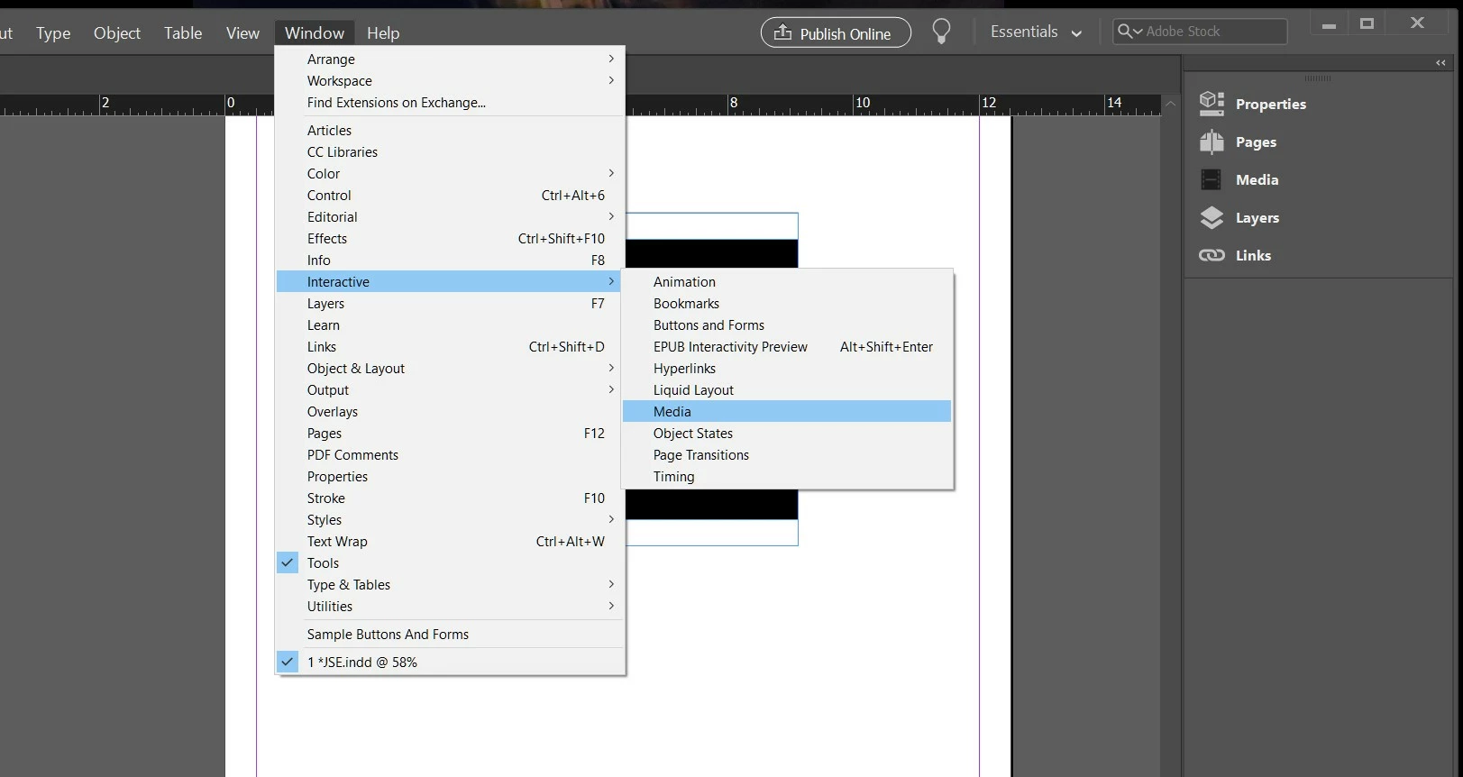 Making an interactive PDF but I'm having trouble with the media panel. When I add a mp4 file to a page the media panel won't open. Not able to have any control on the video at all. All the other tabs work in the Interactive Window except for Media. Help please?