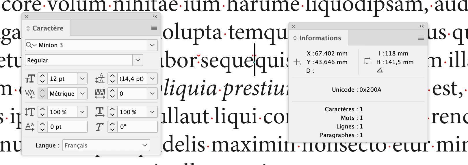Minion 3 thin space, hair space, and italic small caps