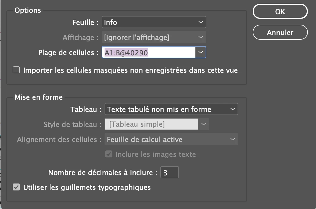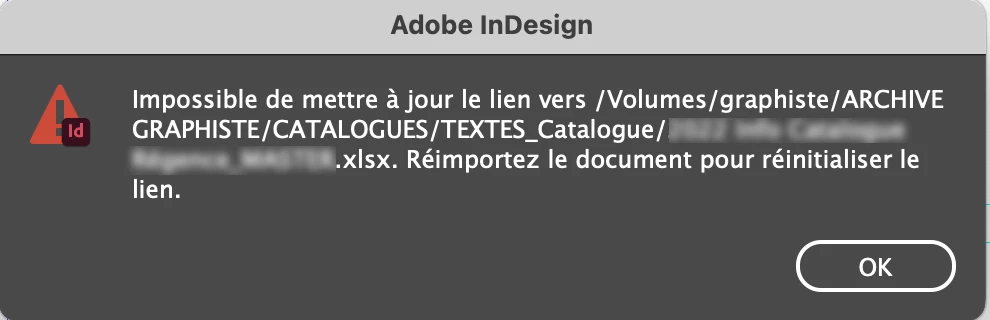 Nous avons un catalogue fait dans InDesign avec des textes importer d'un excel (.xlsx). Nous voulont mettre à jours les textes mais cela ne fonctionne plus.