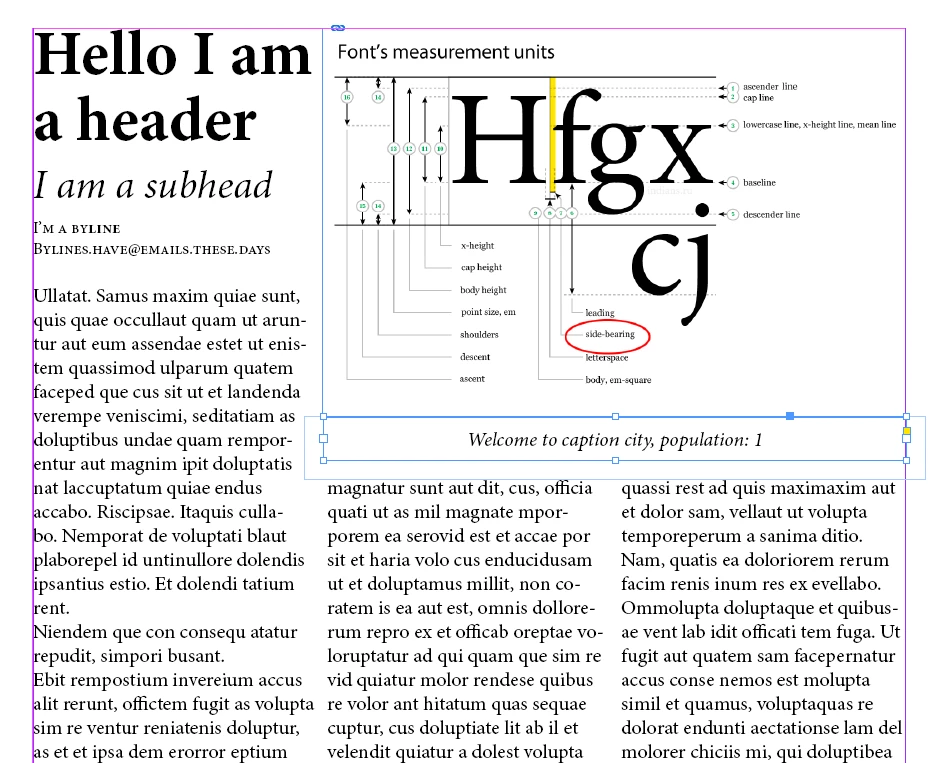 The caption text box has a text wrap offset applied. It's 0.125" on the left, right, and bottom. The box autoresizes vertically based on the length of the caption.