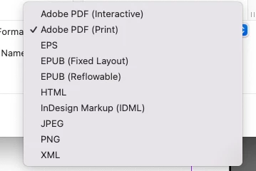From the Format drop down list select Adobe PDF and which one you want (interactive or print)