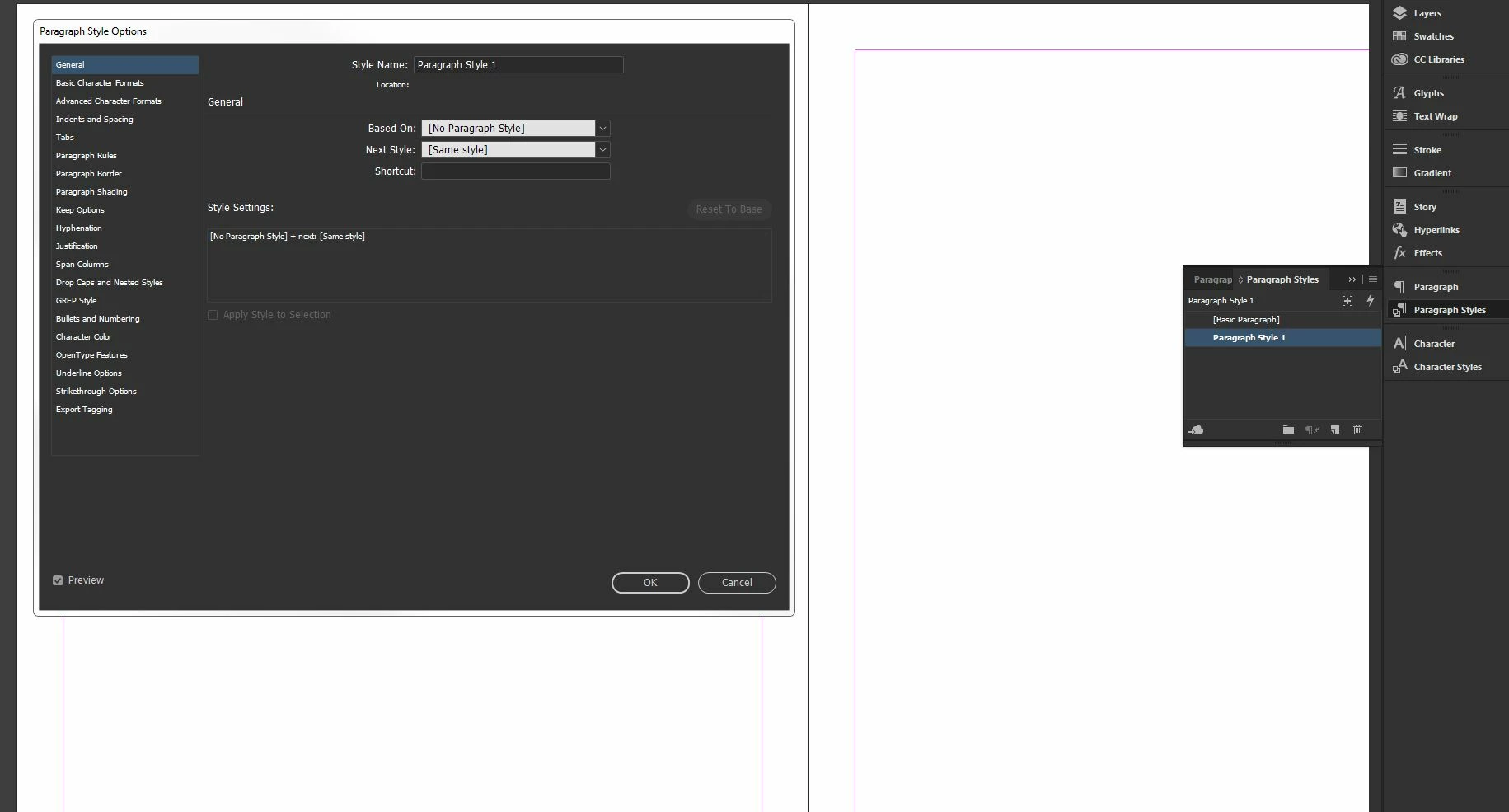 I see the character styles menu but when I try to edit a character style, the options box does not load. It works fine for paragraph styles but not character. It's like InDesign thinks the box is open as I cannot do anything until I press ESC or ENTER. However, I cannot see the actual box.