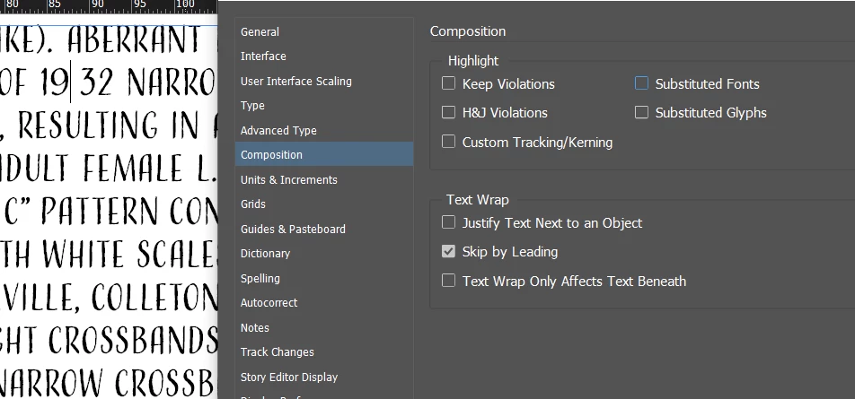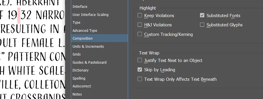 I have some missing font that comes from Word to Indesign with no pink crossed rectangle just a thin pink line that is very hard to see. ( I zoomed in 150X to see the line) Preflight panel does not find the error. I have checked the "Substituted Fonts and Glyphs" in the Preference Panel but the missing font is not found. I highlight the sentence that has the missing font and the font panel says that the font is all the same. Is there a setting that I am missing? How can I make the thin pink line more noticeable? Is there a way to have Preflight find the error?