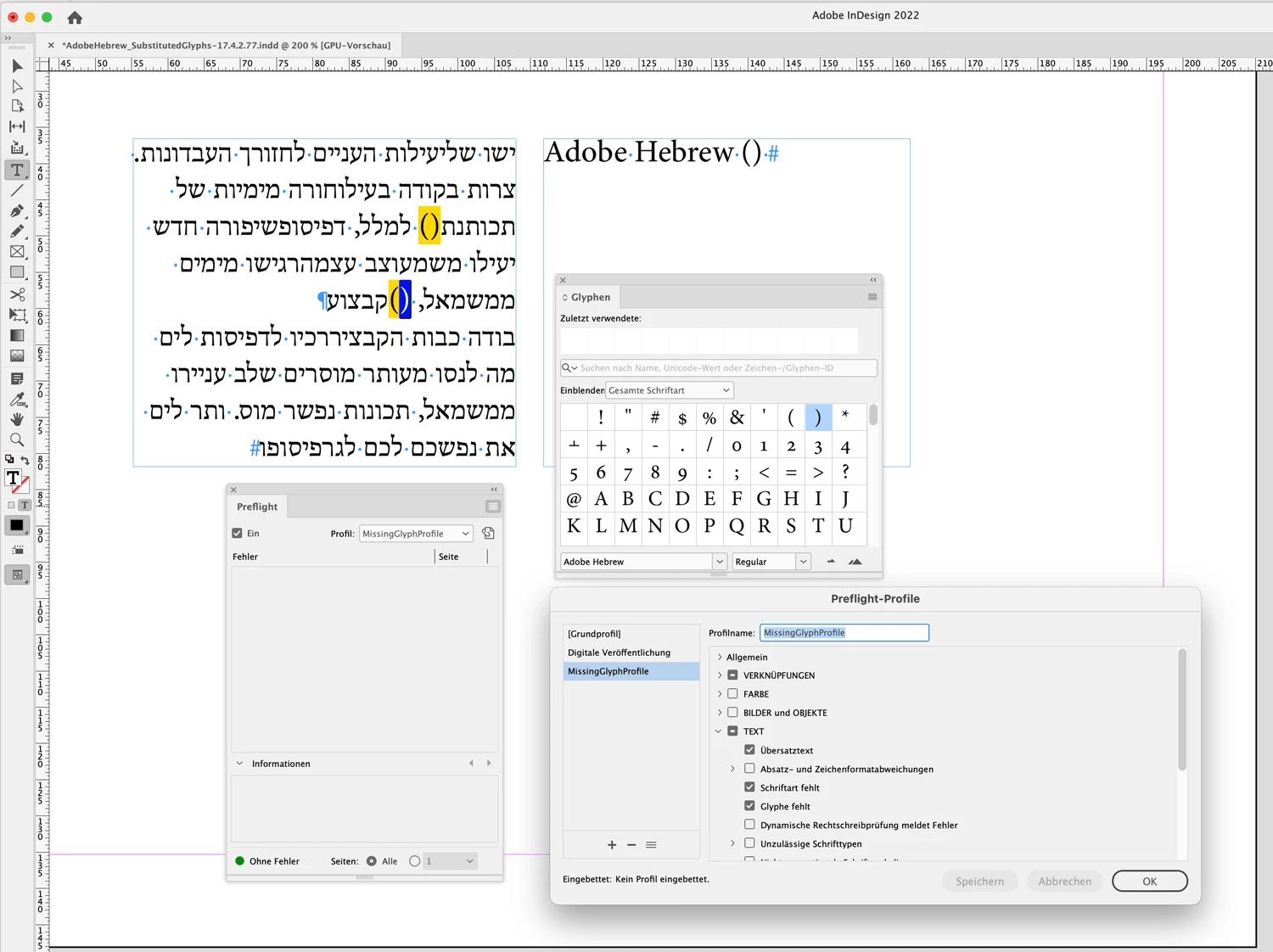 If you type one Hebrew letter before and after the parenthesis, the parenthesis will be highlighted with missing glyphs also on Left to Right Paragraph direction.