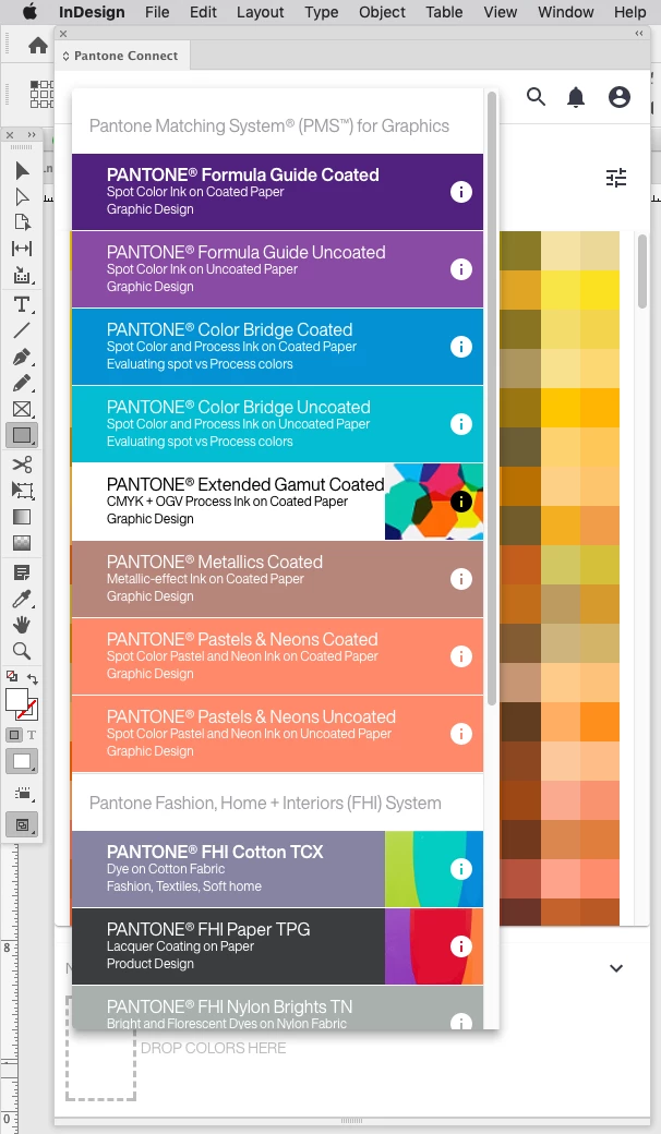 One thing to watchout for with the current version is the PANTONE Bridge Libraries are supposed to be Pantone’s recommended CMYK simulations for the solid ink spots colors. When you click a Bridge swatch more icon there is an option to add the Bridge color to your swatches, but the color gets added as process Lab and not the listed CMYK value.