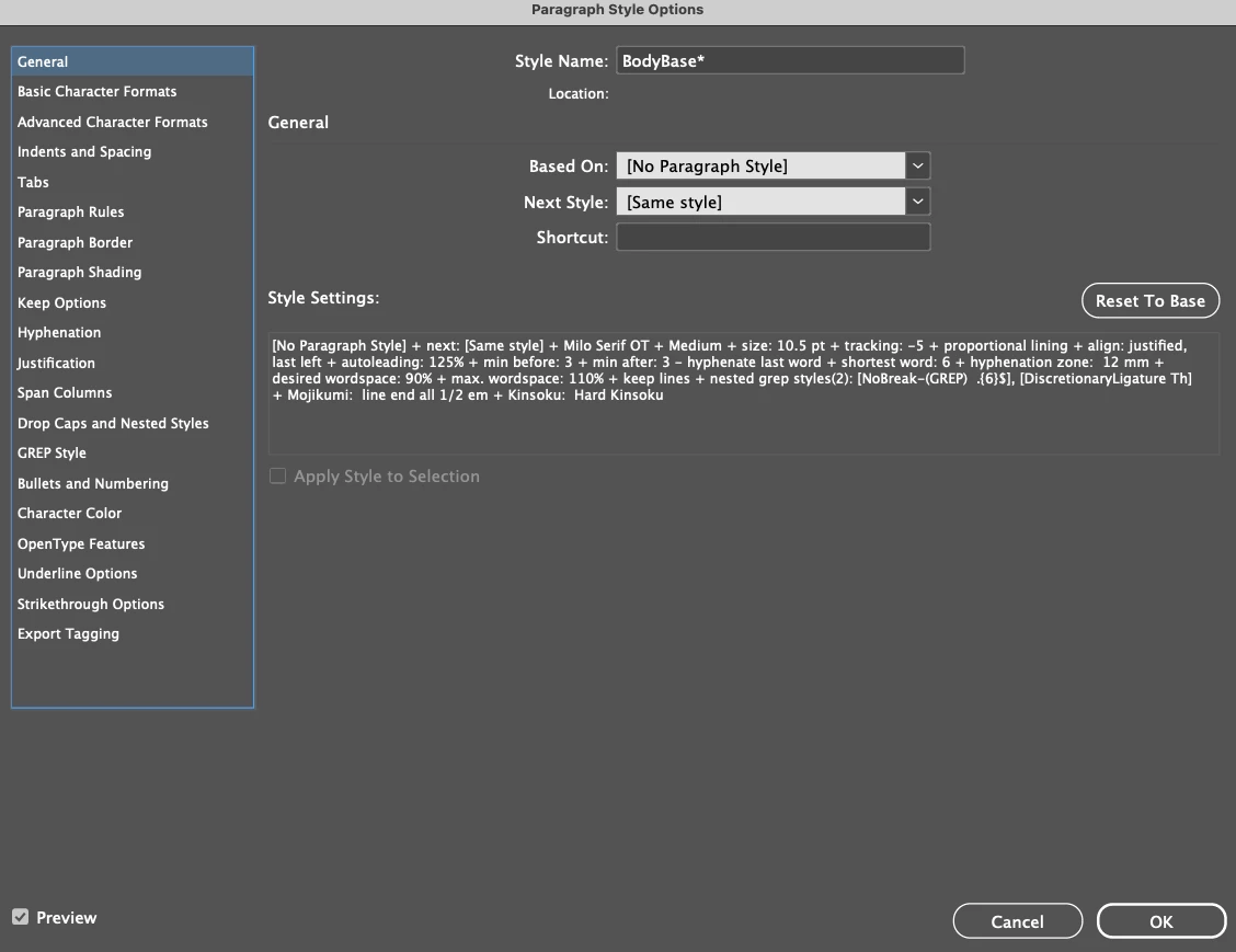 I'm attaching an INDD file. BodyBase* is one style that has it turned on.
