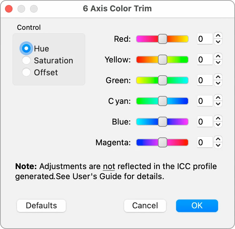 On my old NEC SpectraView, this can be done using the 6-Axis Color Trim feature in the SpectraView software. The dialog box tells you that these adjustments aren’t included in the display profile, which makes sense because you’re doing this after and outside of the standard calibration (i.e. “you’re on your own”).