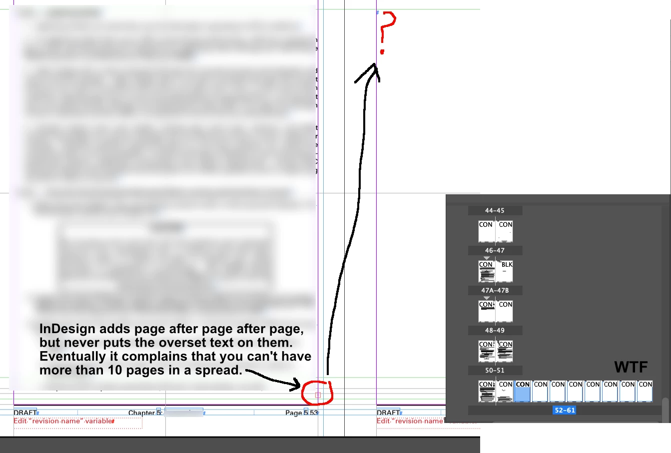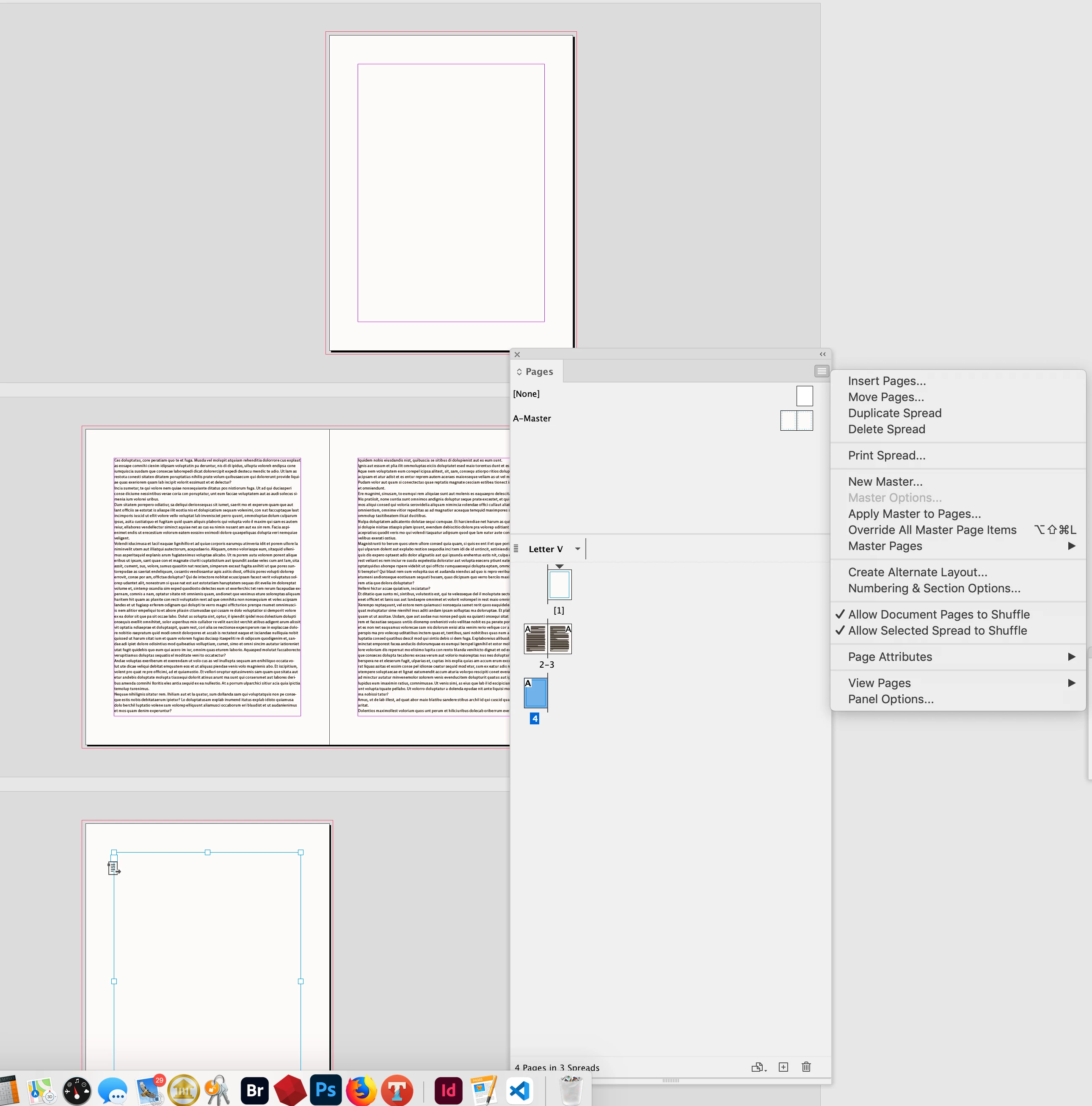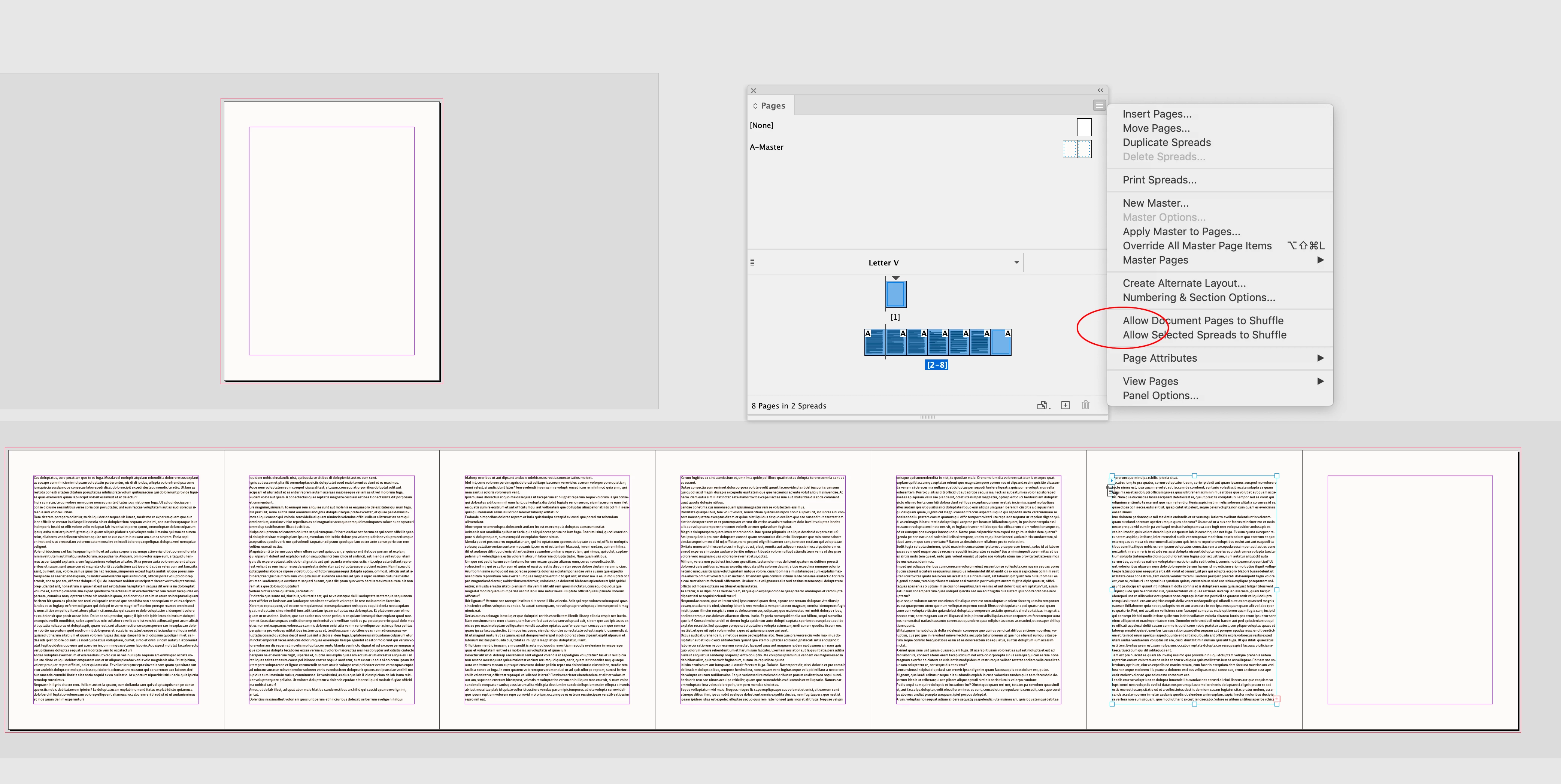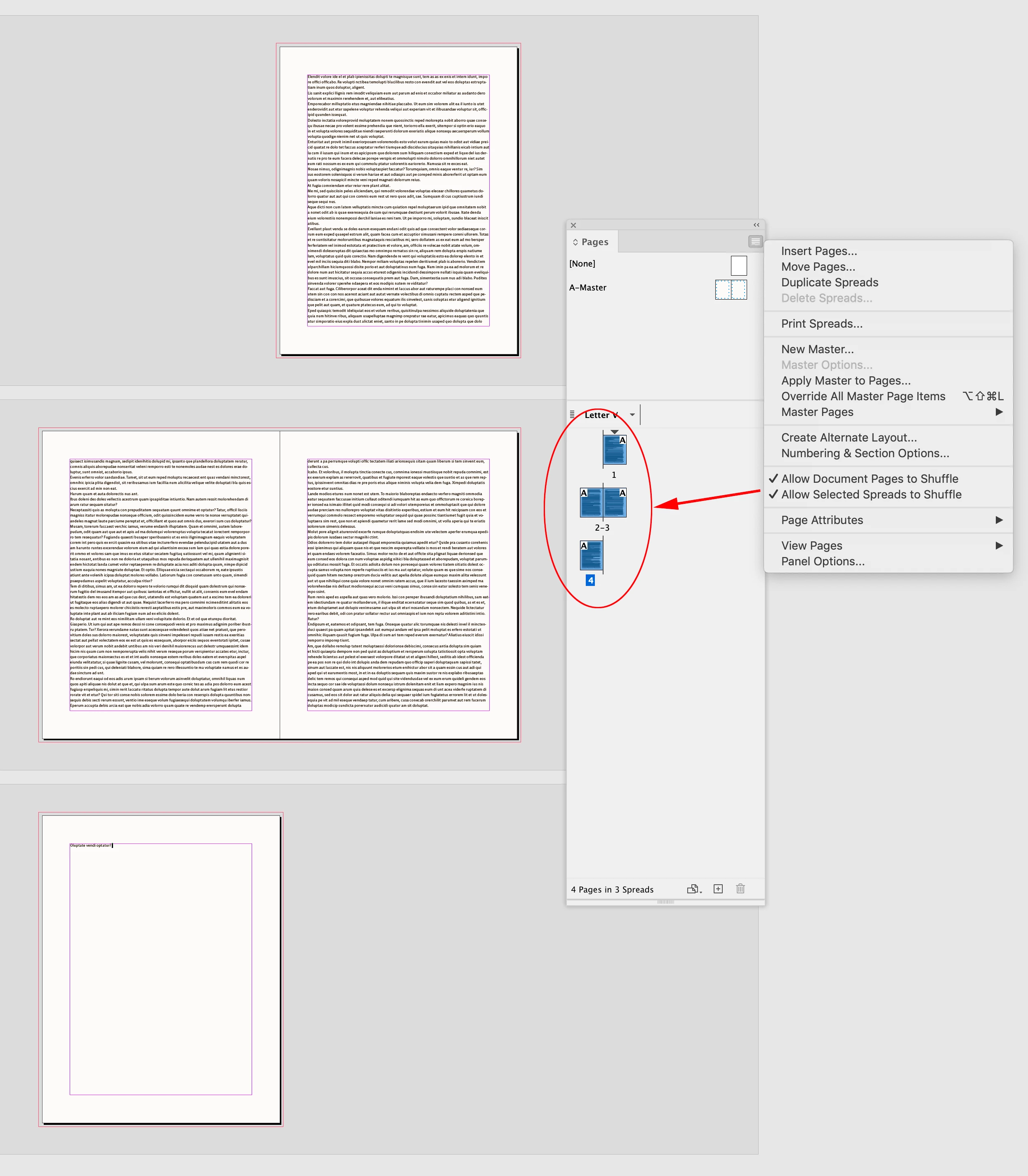 And I can find no way to reliably prevent InDesign from allowing spreads to go beyond two pages. I NEVER, NEVER, NEVER WANT THIS. I have experimented with every combination of allowing document and spreads to shuffle, and nothing prevents this behavior reliably. You also can't move the erroneously-positioned added pages to the correct side, again regardless of how you set the shuffling options.