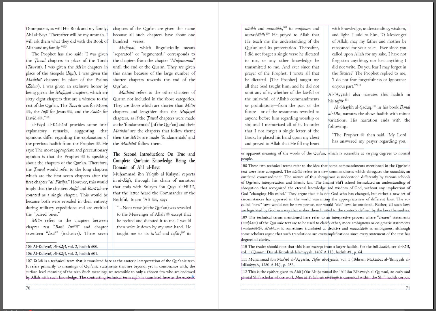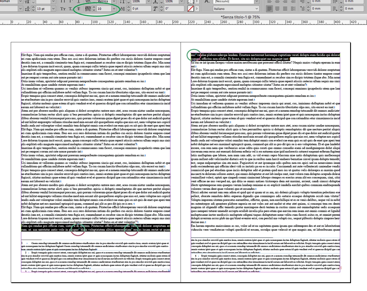 4. When I import this portion of the document into Indesign, only the first two lines of the paragraph in question appear on the page and the rest of it, which contains the four lengthy footnotes) disappears - it does not flow onto the proceeding pages;