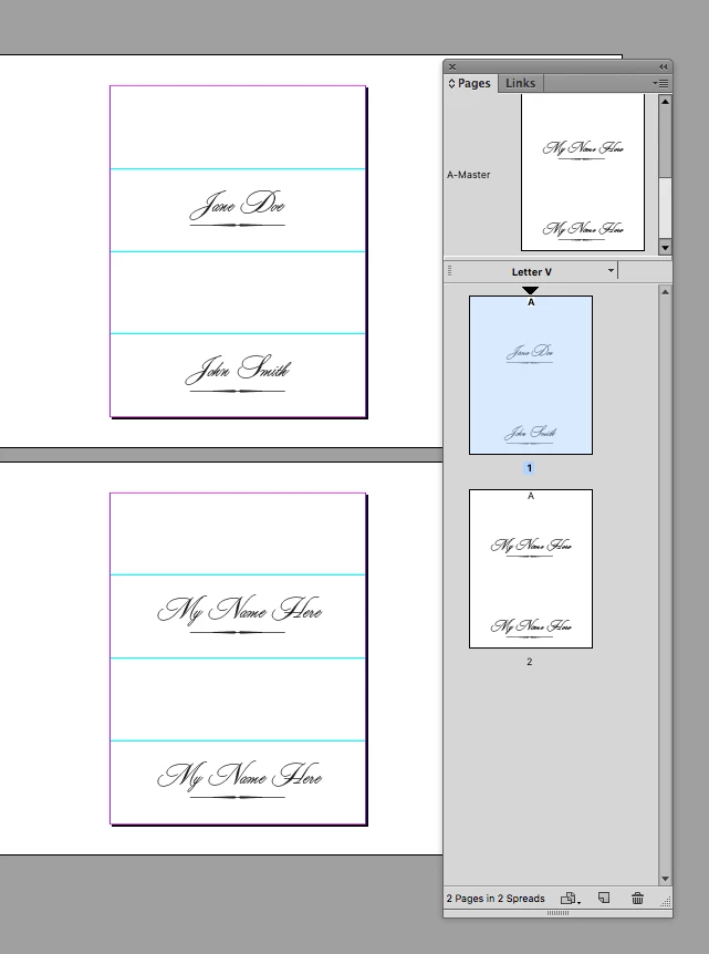So I am trying to learn how to do everything in Adobe InDesign CC that I previously accomplished in MS Publisher. I am making table name cards for a holiday party, and I am having a difficult time figuring out how to do "pages" and "sheets" (Publisher terms). I'm assuming this would be the same thing for holiday/greeting bi-fold cards.