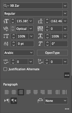 - Changed my preferences in Creative Cloud to all apps in (English: arabicscript)
