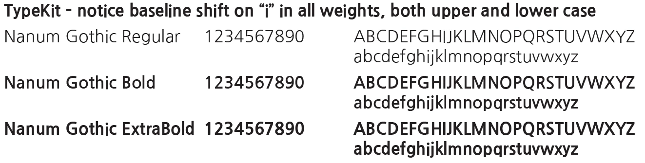 Nanum Gothic TypeKit font baseline shift bug on a single letter