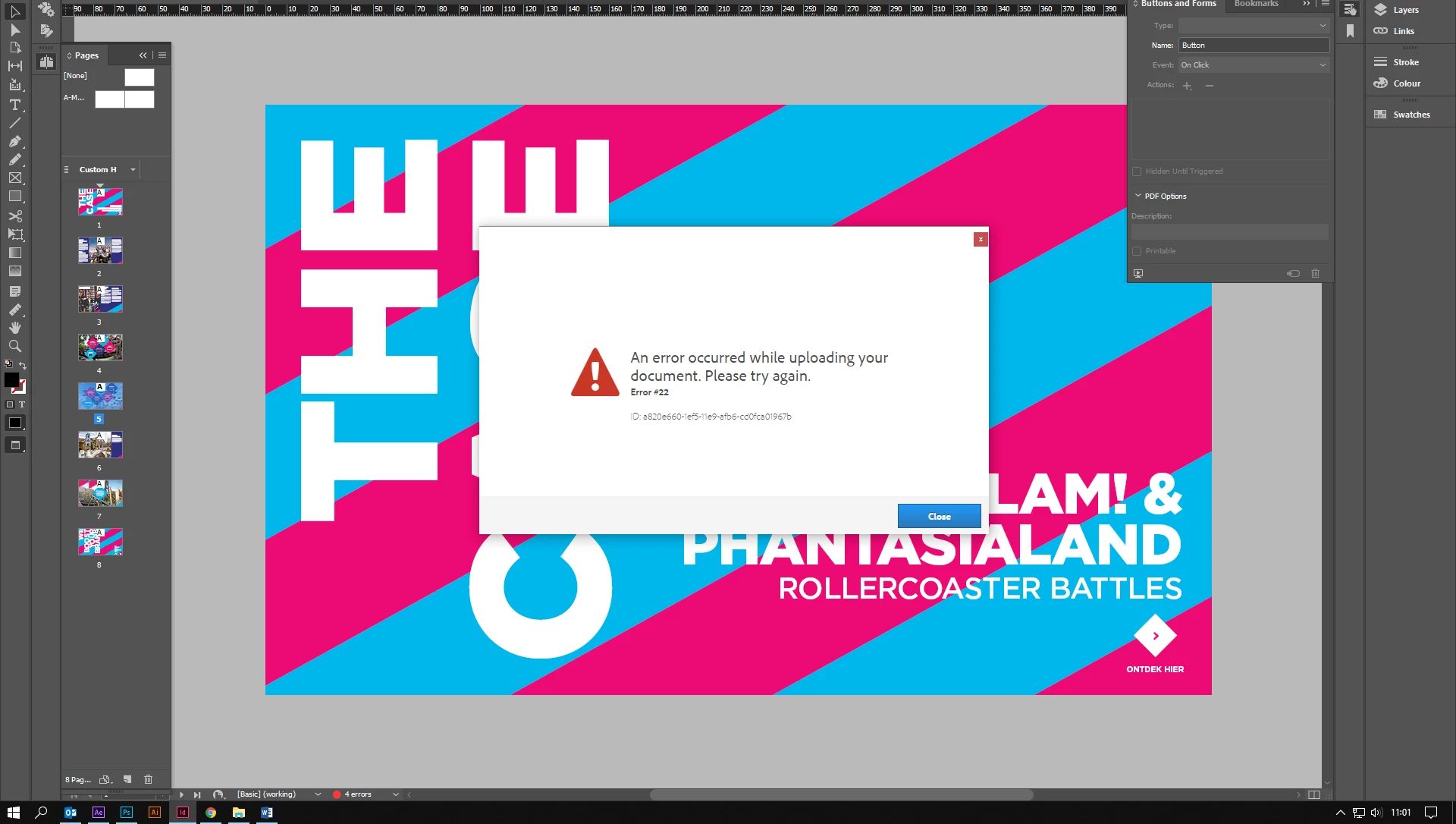 when we publisch a indesign project online we get the following error message: