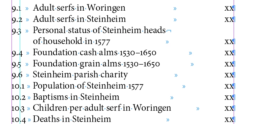 I have a list of illustration in a table of contents. I do not want to put this list in a table nor do I want to make an actual list. But I do want the decimals to line up. I have tried creating a paragraph style to do this but it doesn't seem to work. I can easily put the tabs where I want but not the decimal point. This will be clear when you look at the screenshot. I want the decimal points to line up on the green guideline.