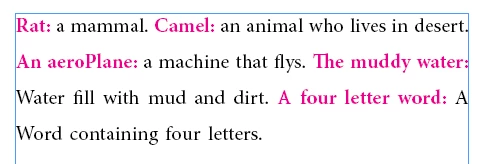 I have a text where I have to describe a word or a sentence. The word is followed by a ":"