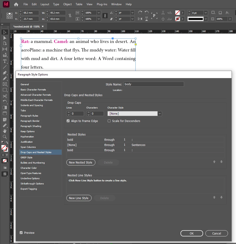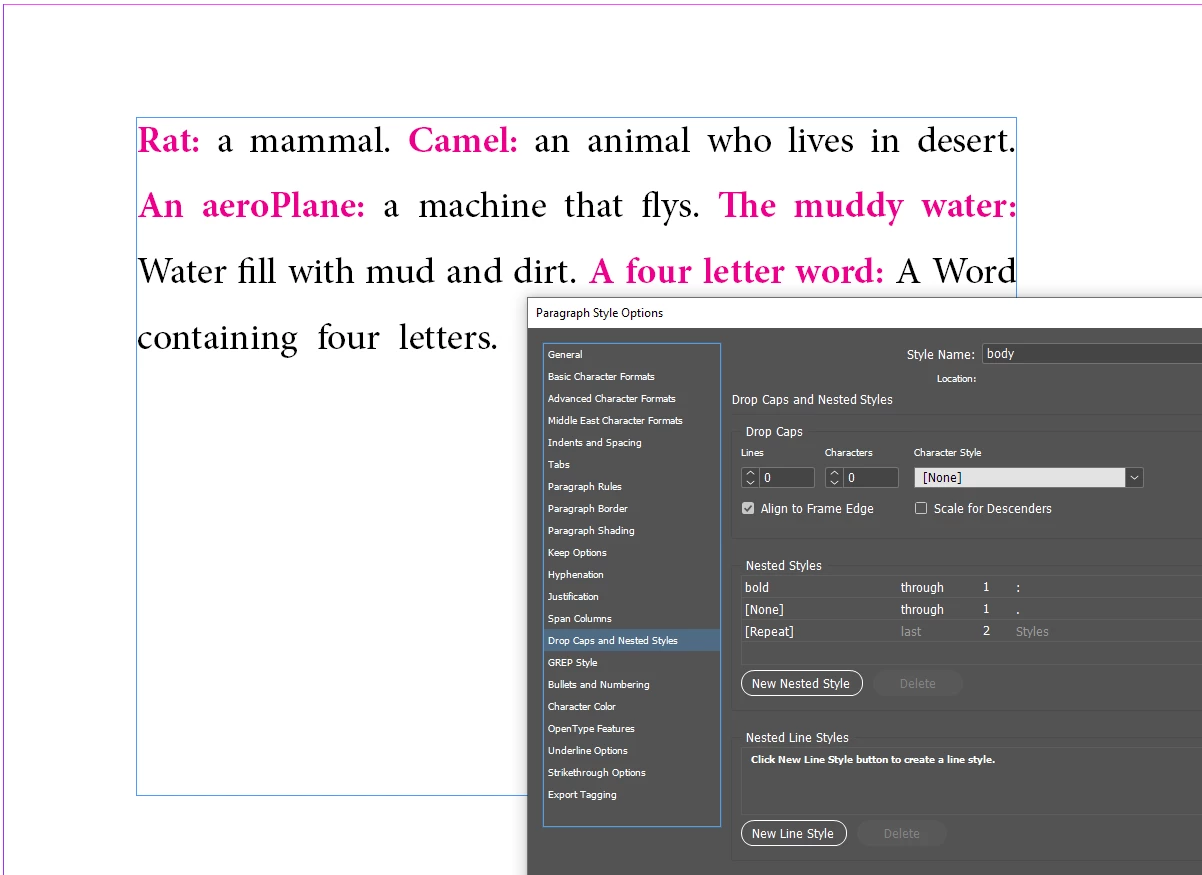 I have attached two screenshots. One of the nested style steps I have taken and one of the expected output.