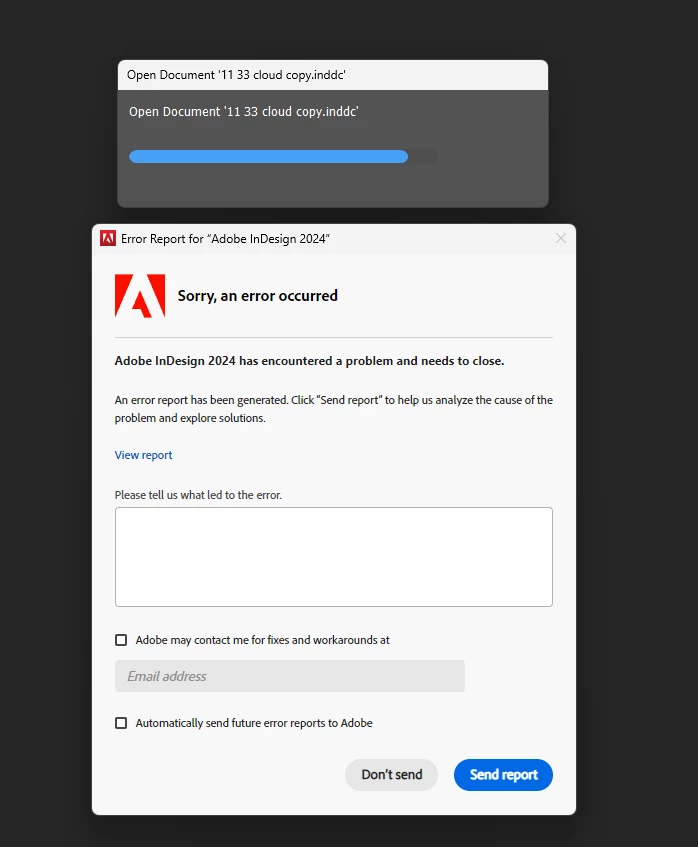 Not able to open Indesign cloud file