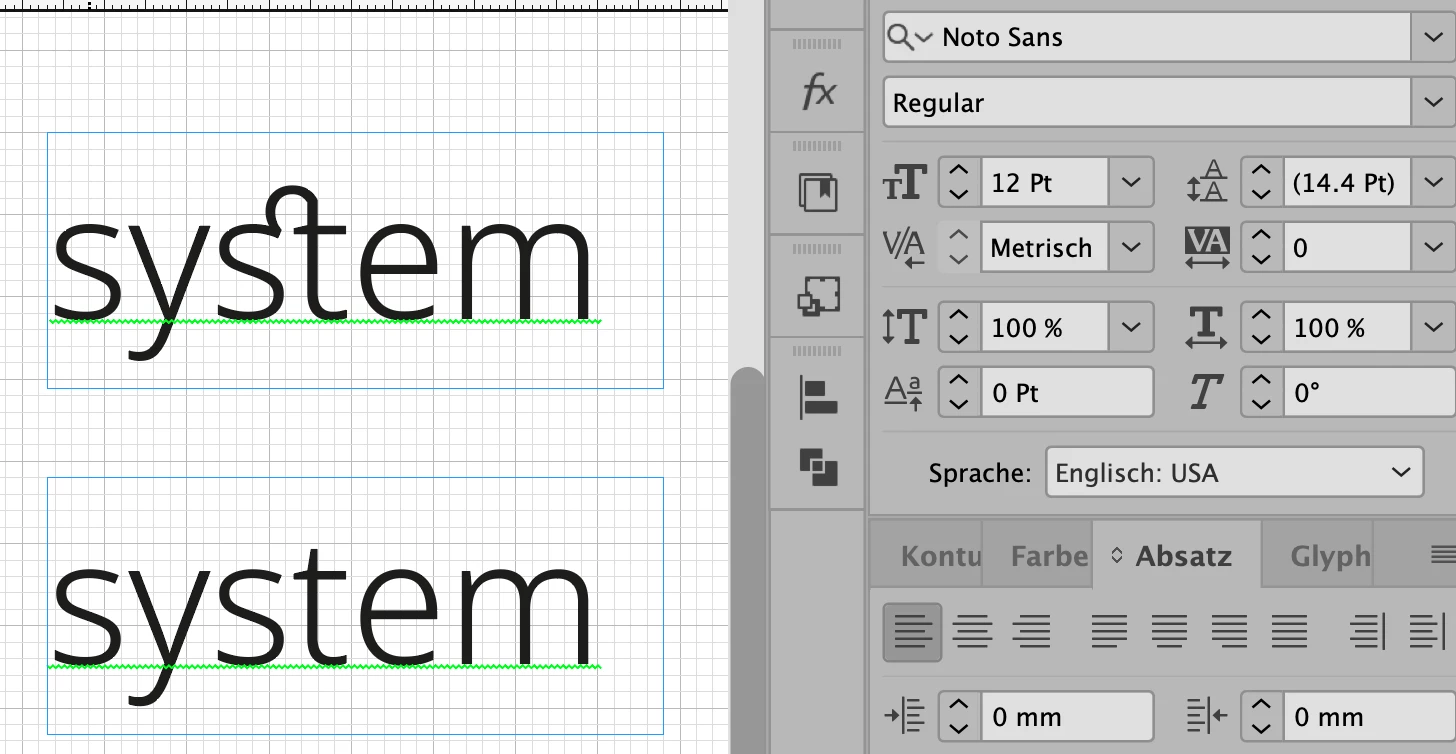 I am currently working on a document that uses Noto sans Light as main font. I opened it the other day and suddenly there appears a link between the letters 's' and 't' (see attachment).
