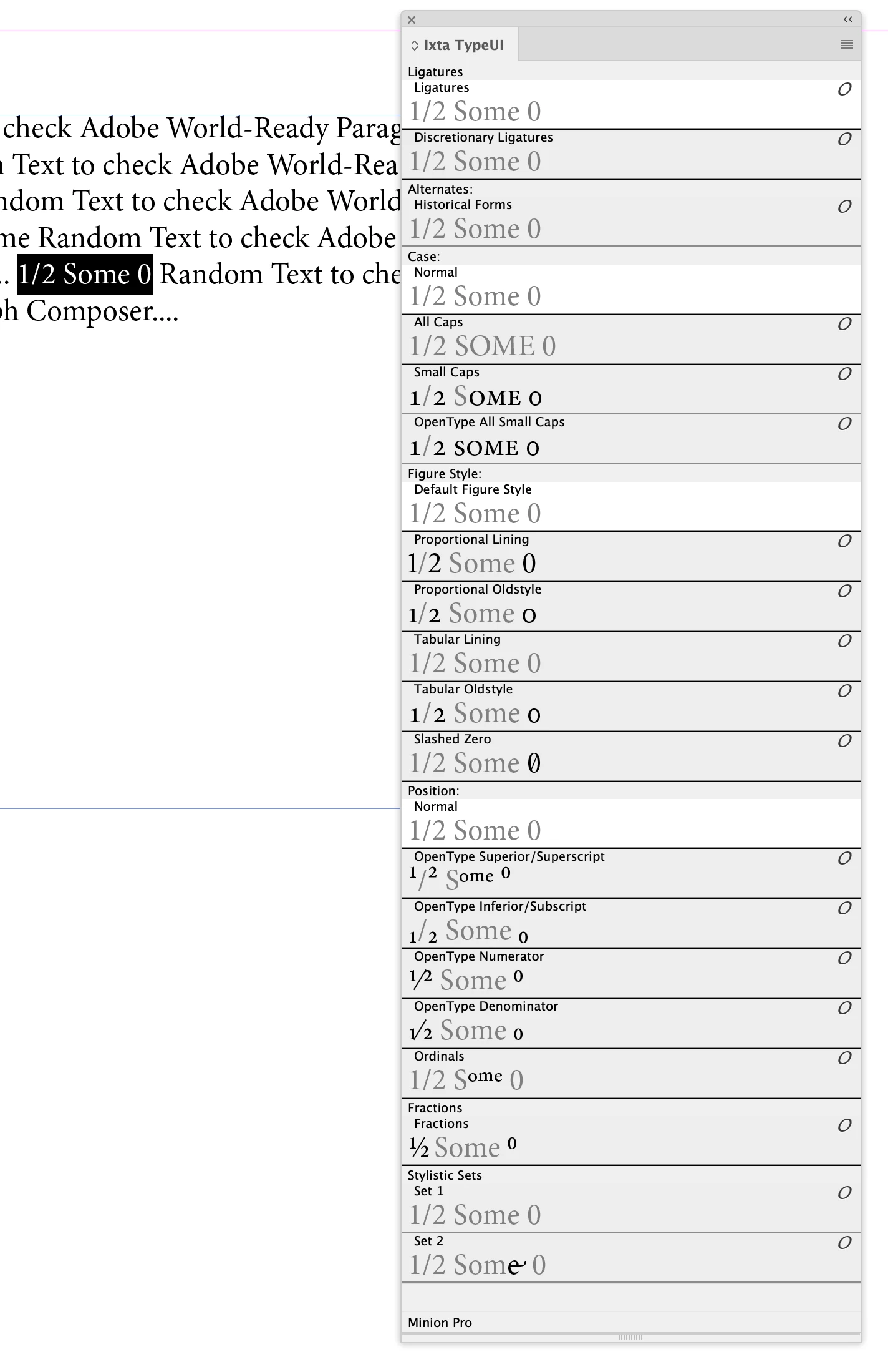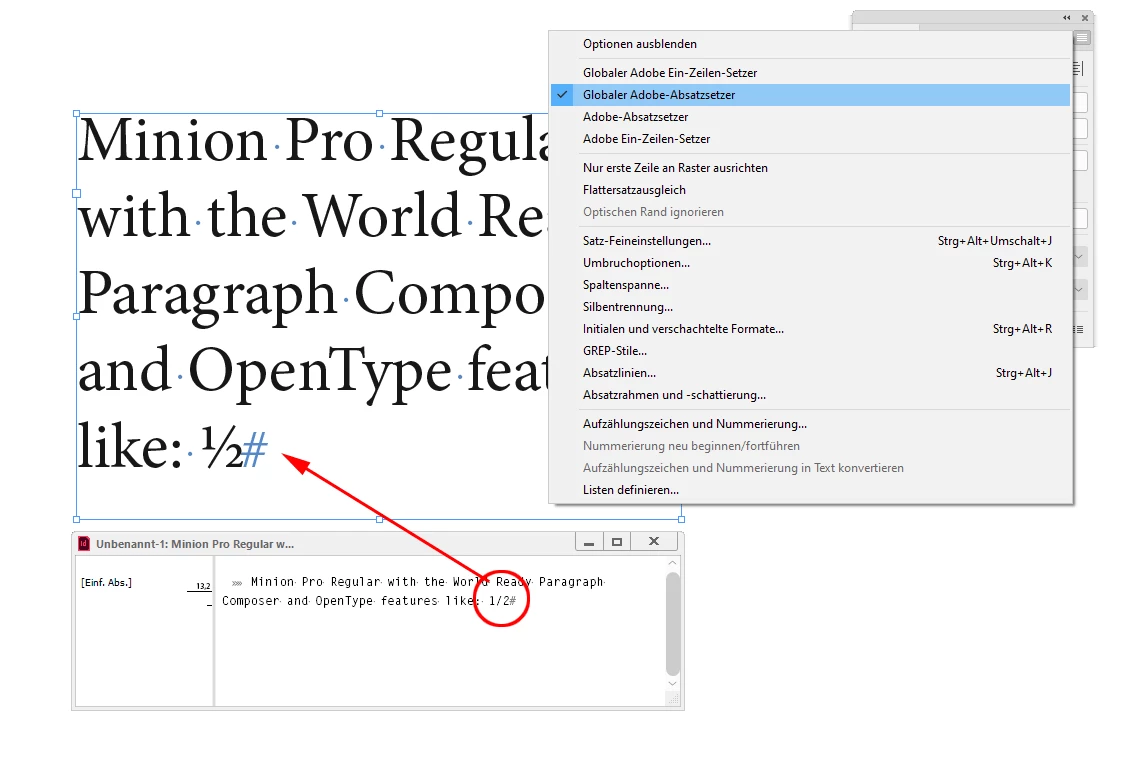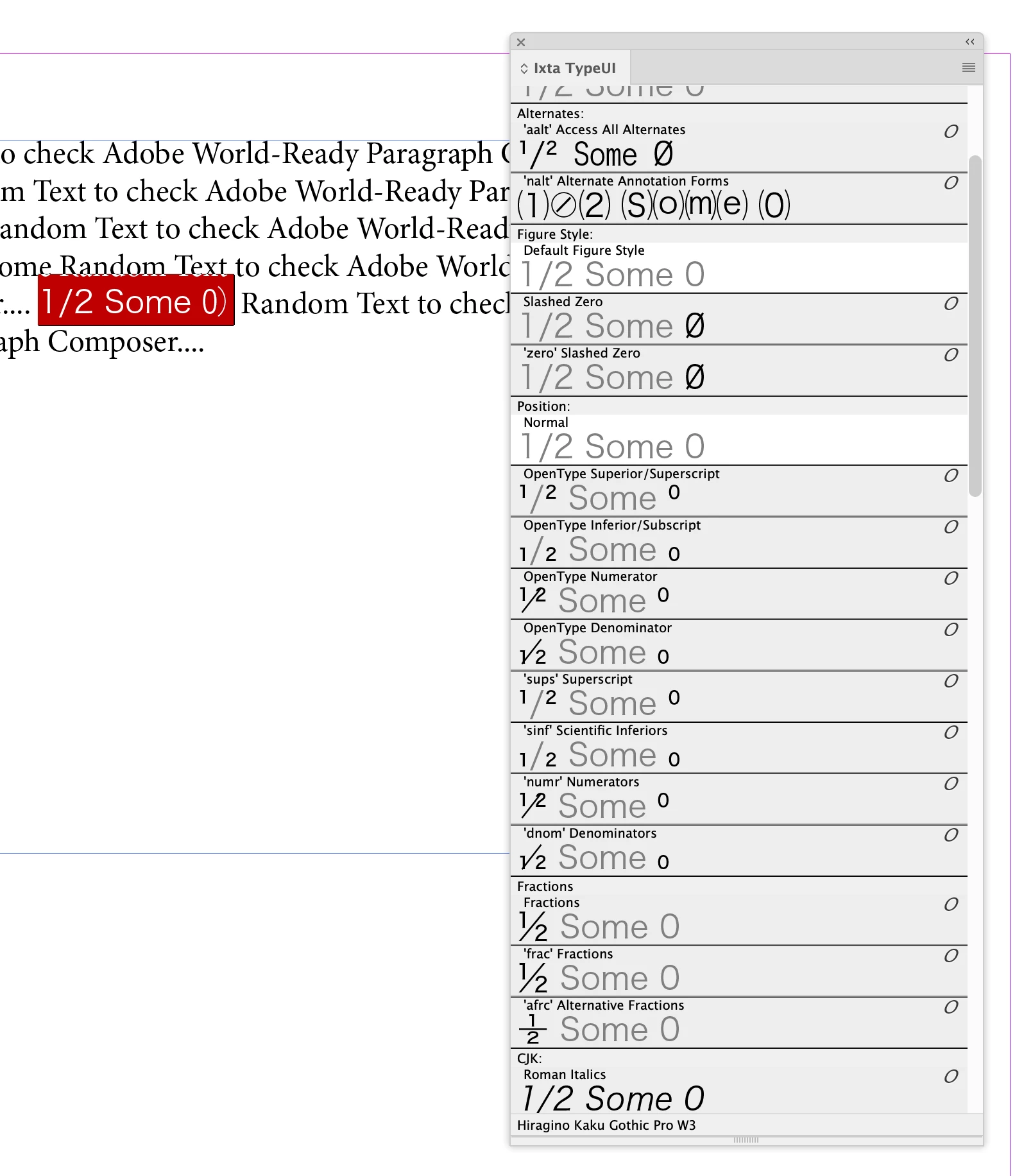 Open Type Features Not working when using Adobe World Ready Paragraph Composer