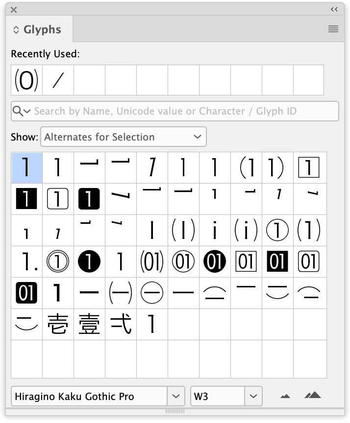 I mean, several width forms, but also alternative fractions with a horizontal fraction bar, plus various alternate annotation forms (those circles and squares around) where some of them don't even have dedicated text attributes. Note the scrollbar size below, you would not want that in the popup thingy.