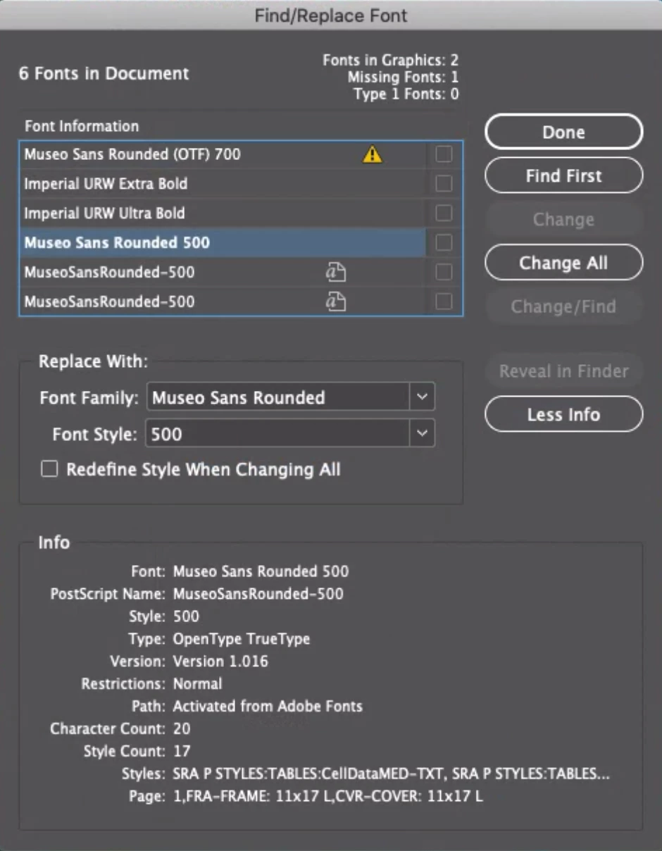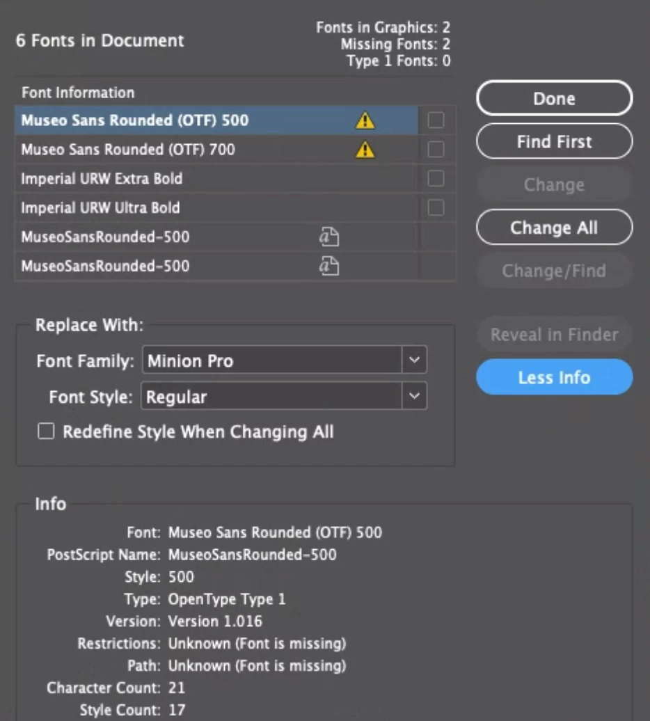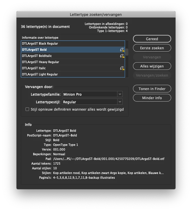 Ik wil graag zekerheid na het ombouwen van het InDesign-document dat ik wel de goede fonts heb uitgekozen.