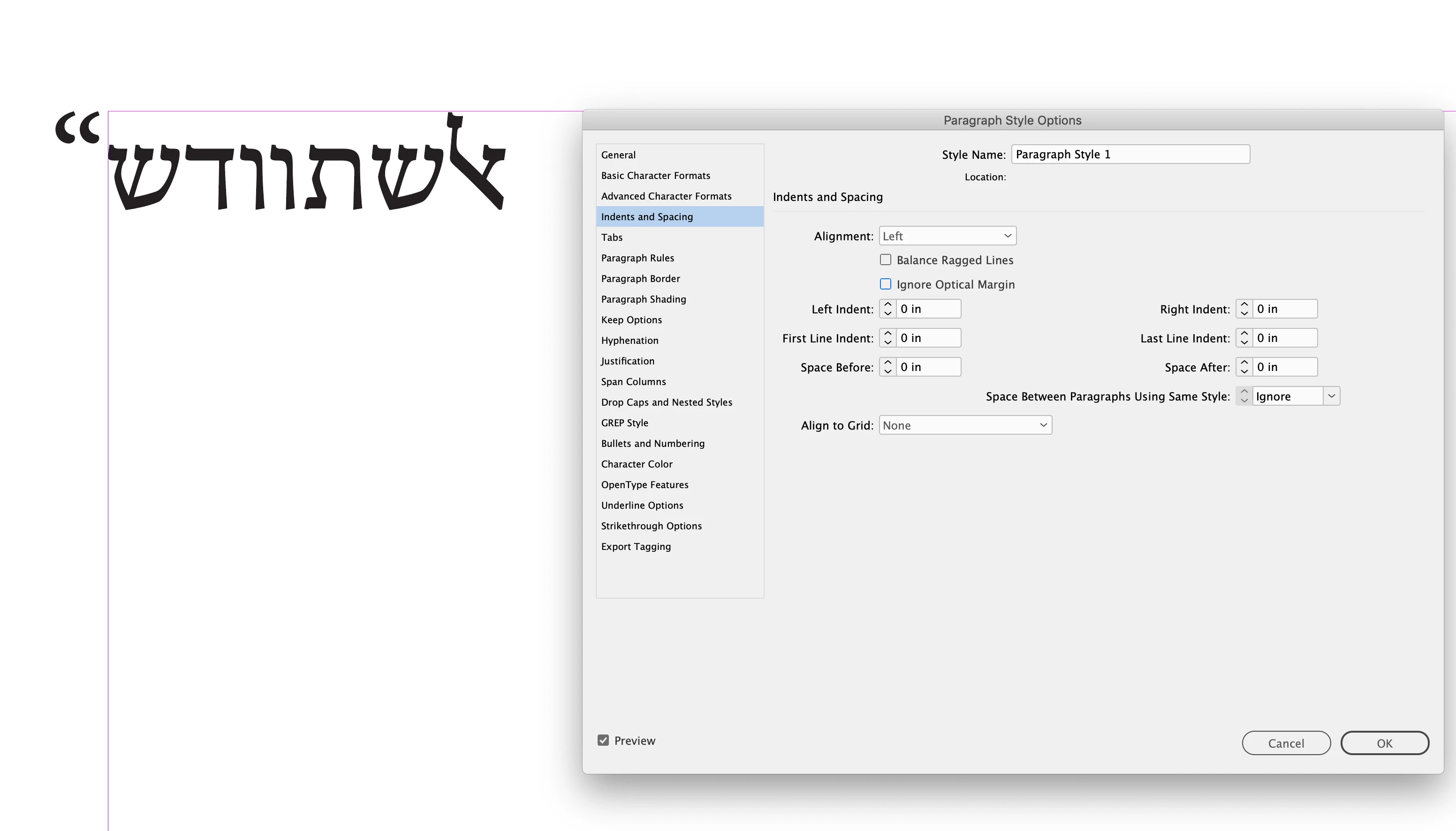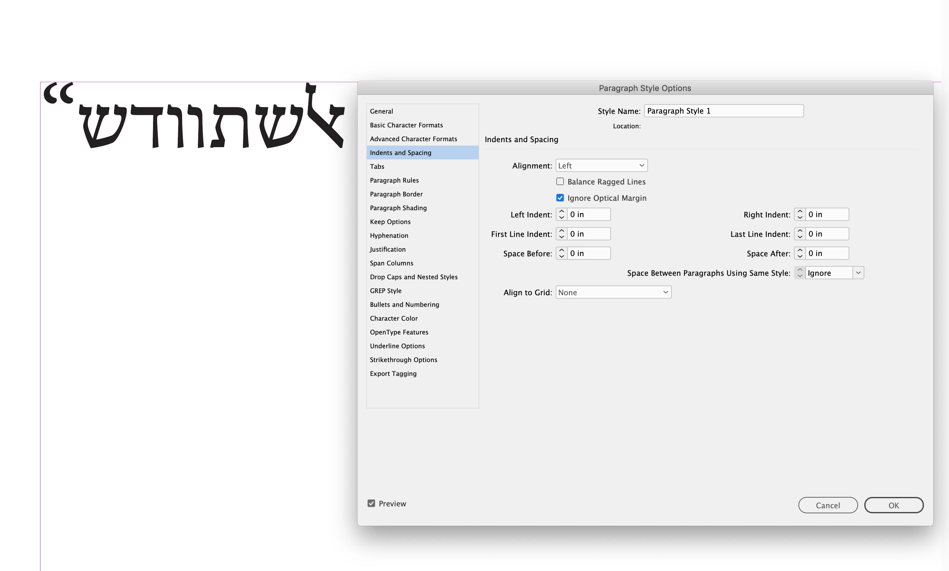 text’s Paragraph Style is not set to Ignore Optical Margin