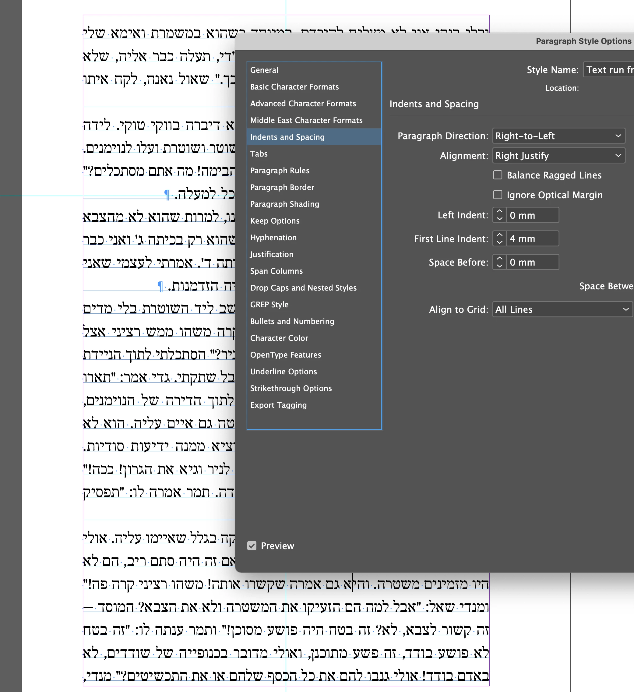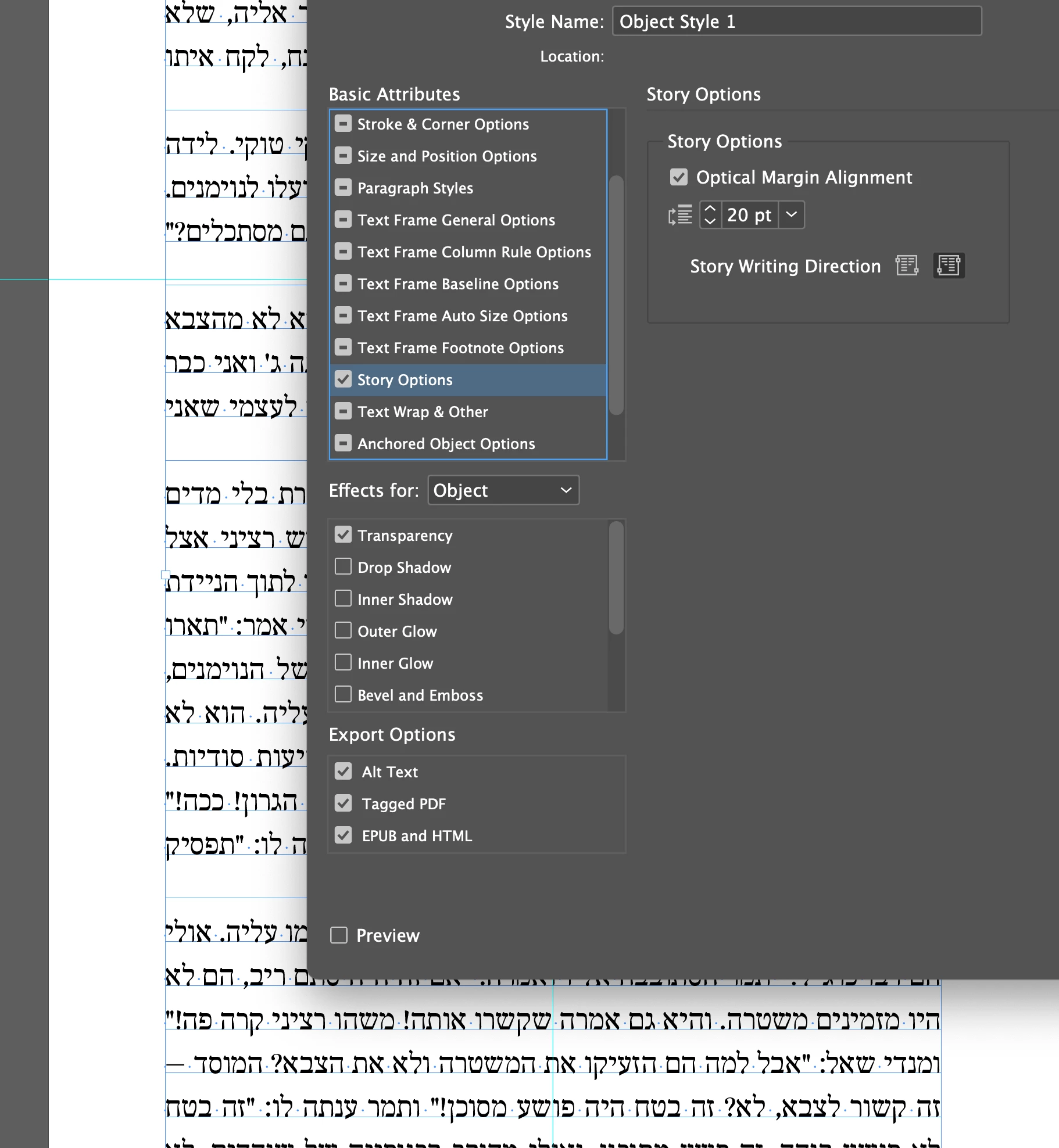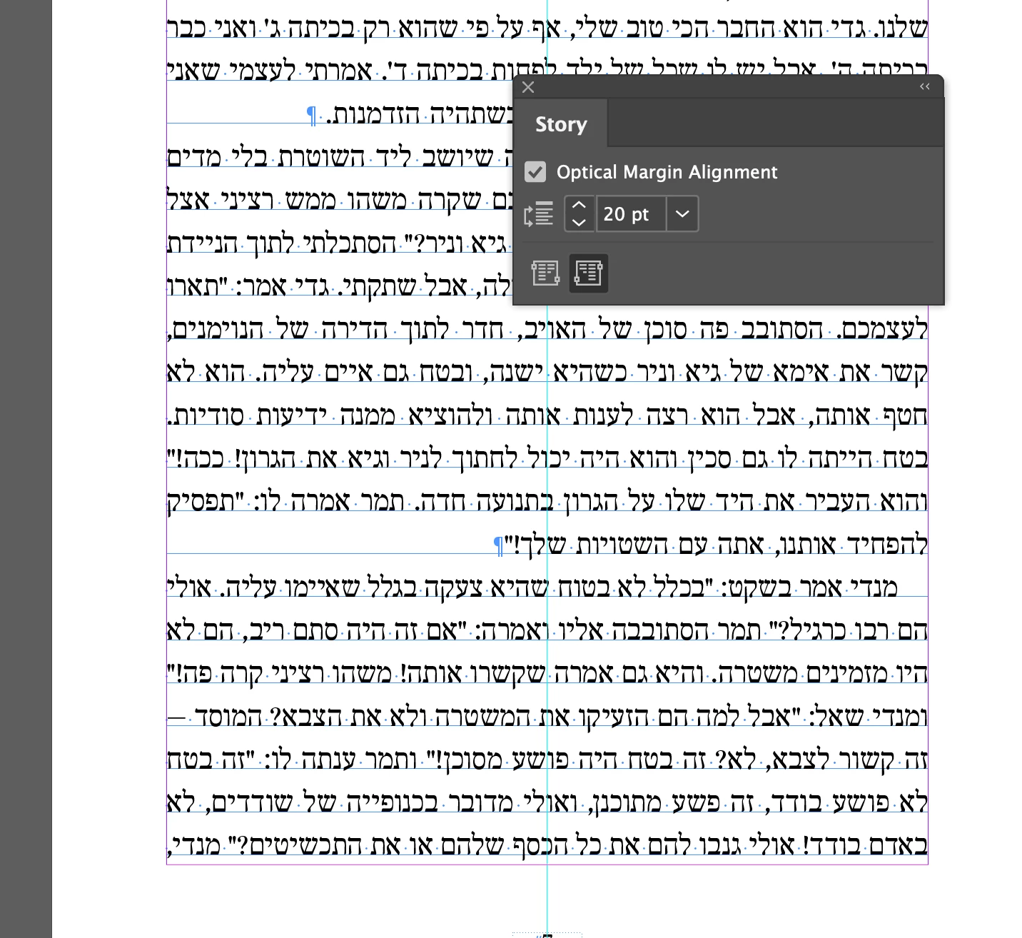 trying to hang pancturation eith optical margin in Hebrew, but it does not work.