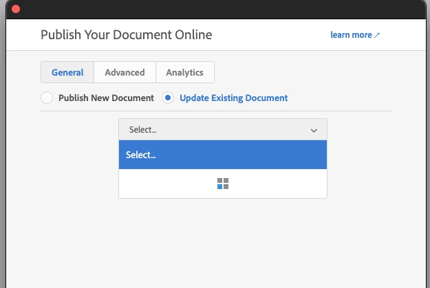 Today I finished updating a document that I had previously published online. But when I tried to update it, the dropdown menu wouldn't populate with *any* of my previously published documents.