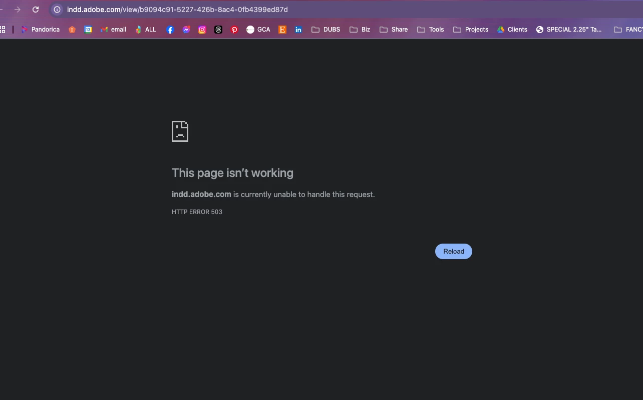 It seems to happen with others publish online documents as well. (Browsing this forum it's easy to find links people dropped for troubleshooting. None of them work for me, all 503 server errors.) I don't see an outage report for online publishing on the Adobe status page, but I also don't see it as an option in the dropdown either.