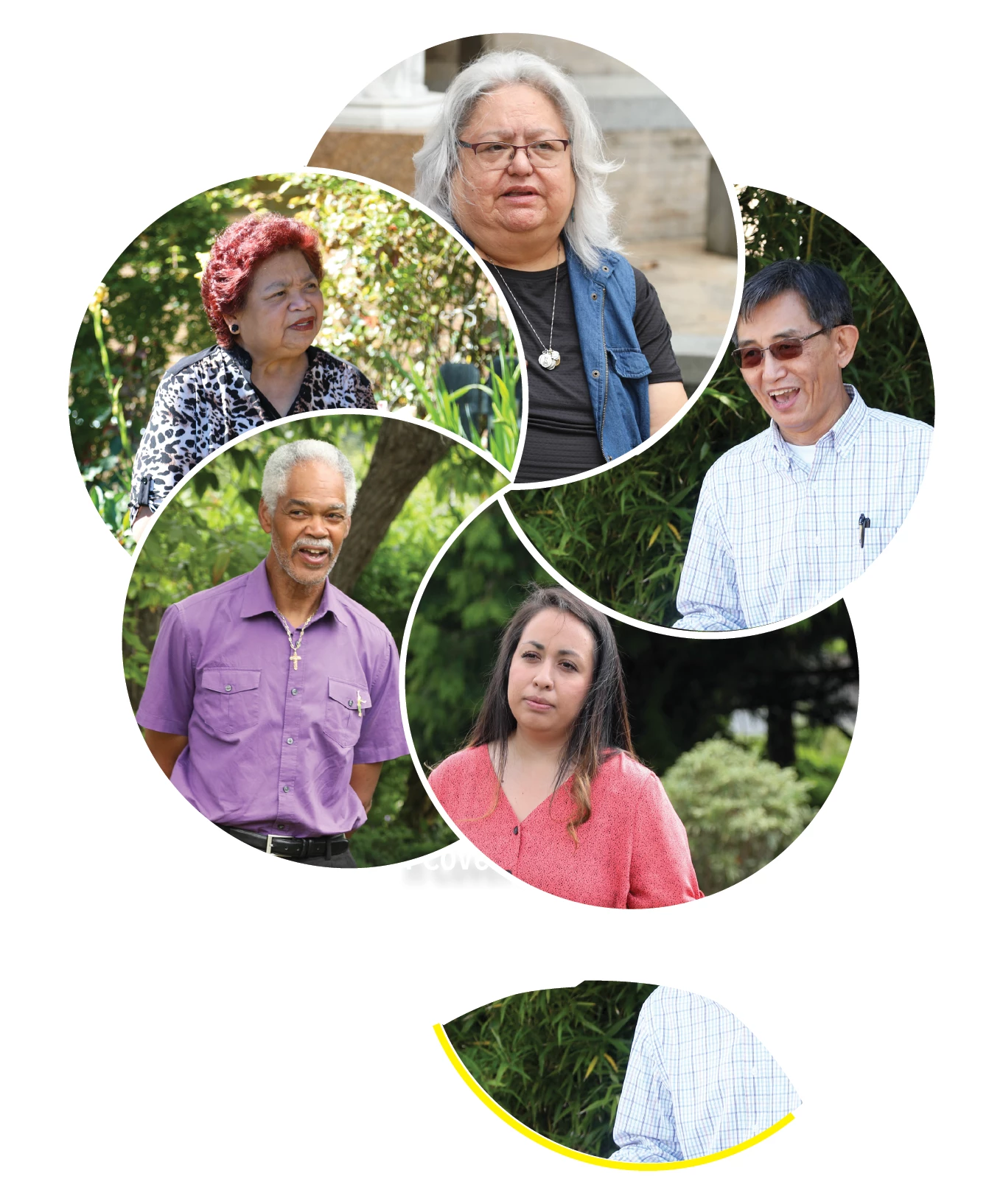 I want the photo of the women in pink to not only overlap the photo of the man in purple, but also underlap the man in the light checkered shirt. Is this possible ?