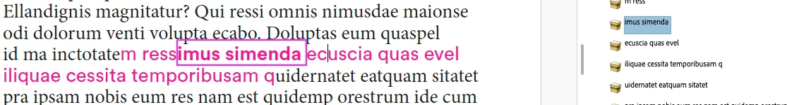 Here is the text with multiple overrides: a different font, pink and pink+bold