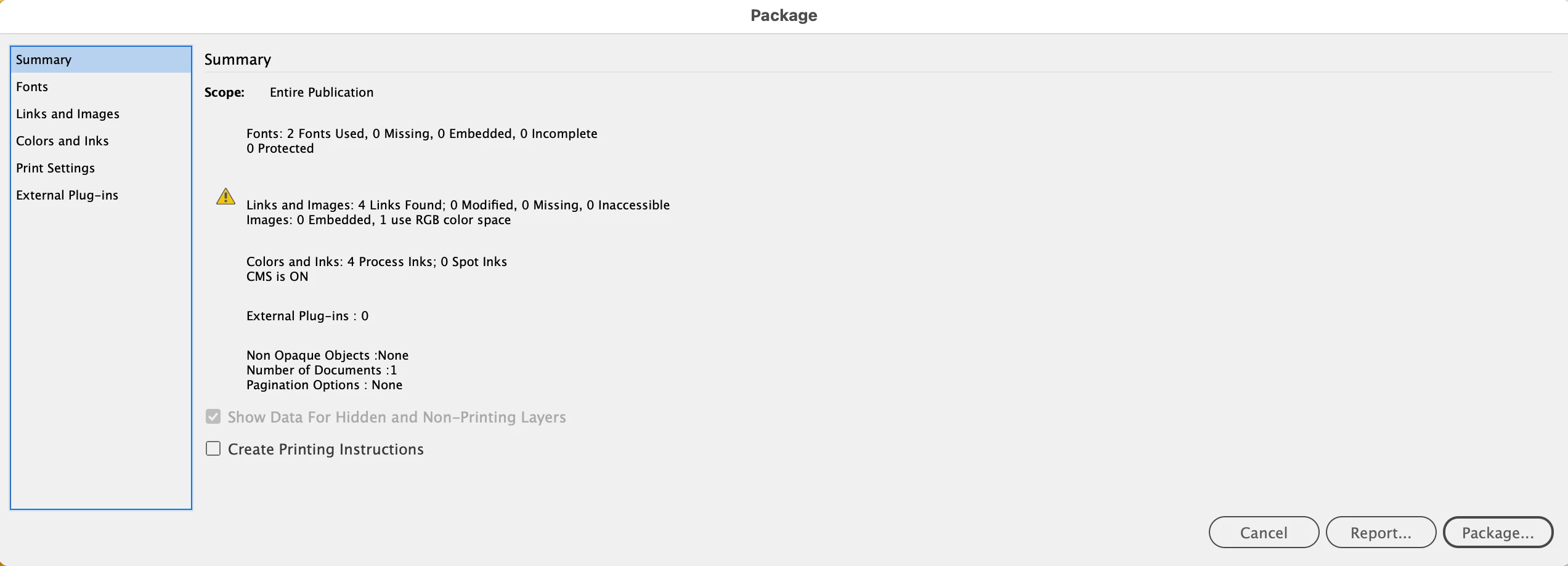 Package "dialogue" box is very wide