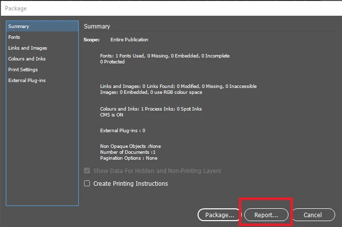 How to automate, generating the report alone ( Save as text file) using the "Report" option in the package menu as below.