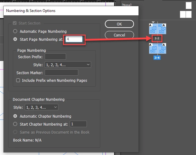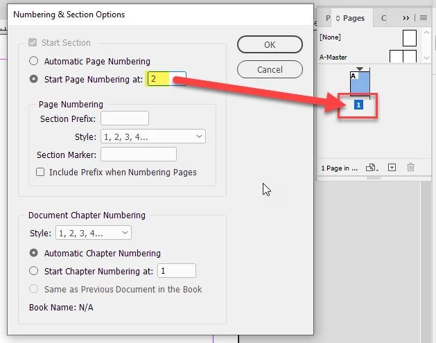 Now change 'start page number at' from the default ‘1’ in the numbering & section options to, say, ‘2’.