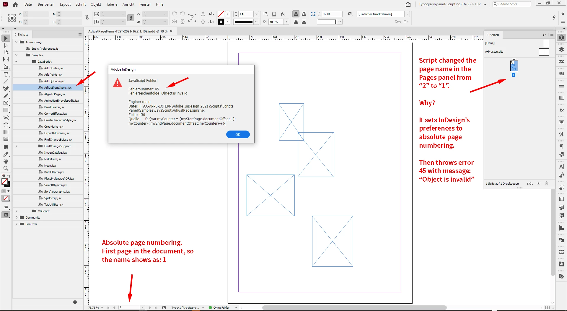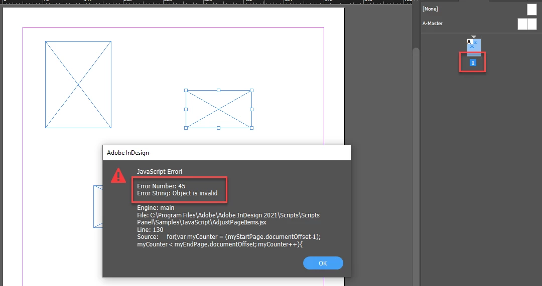 I noticed a post in the InDesign Scripting Forum group on Facebook: a guy reported that the pre-installed AdjustPageItems.jsx script didn't work for him throwing the error. When I looked into the problem, I discovered the bug.