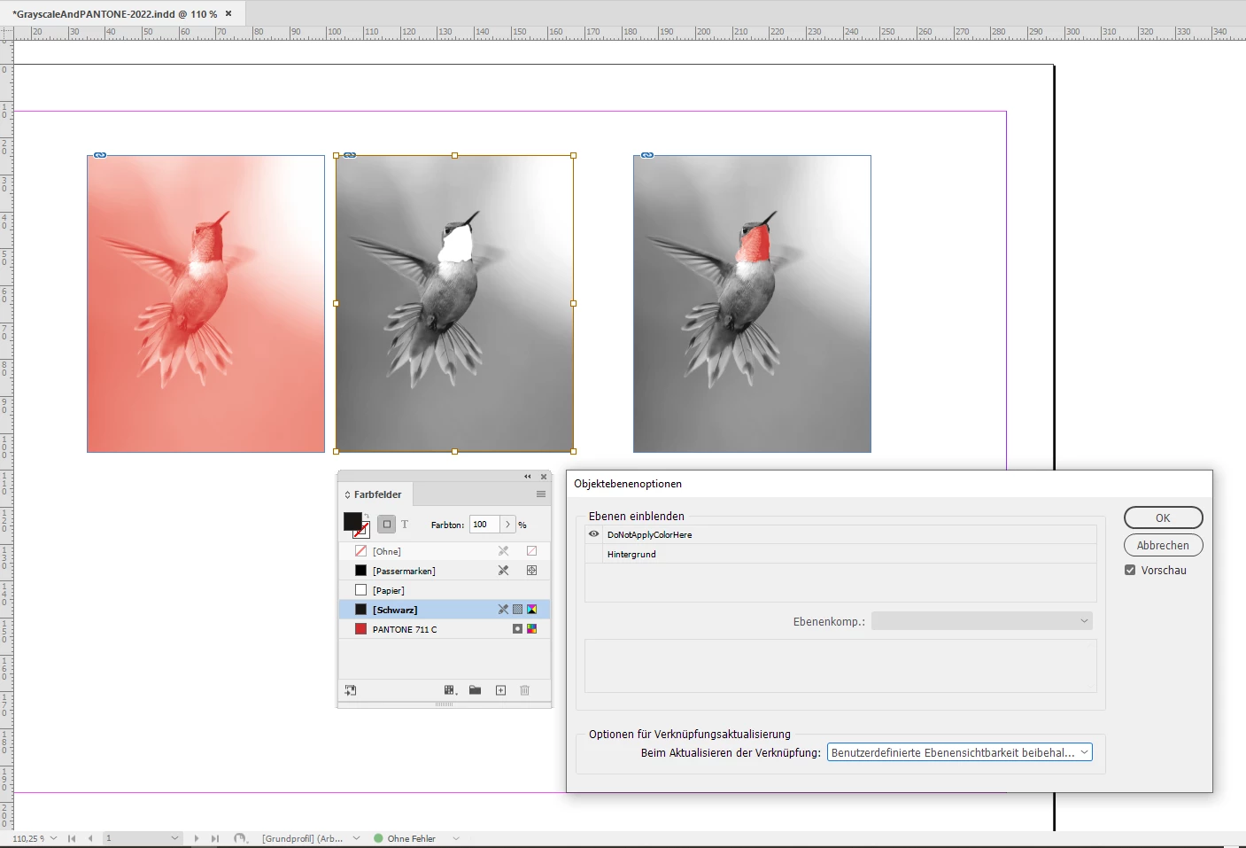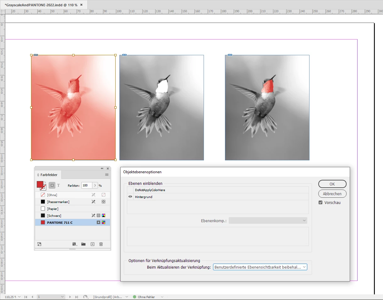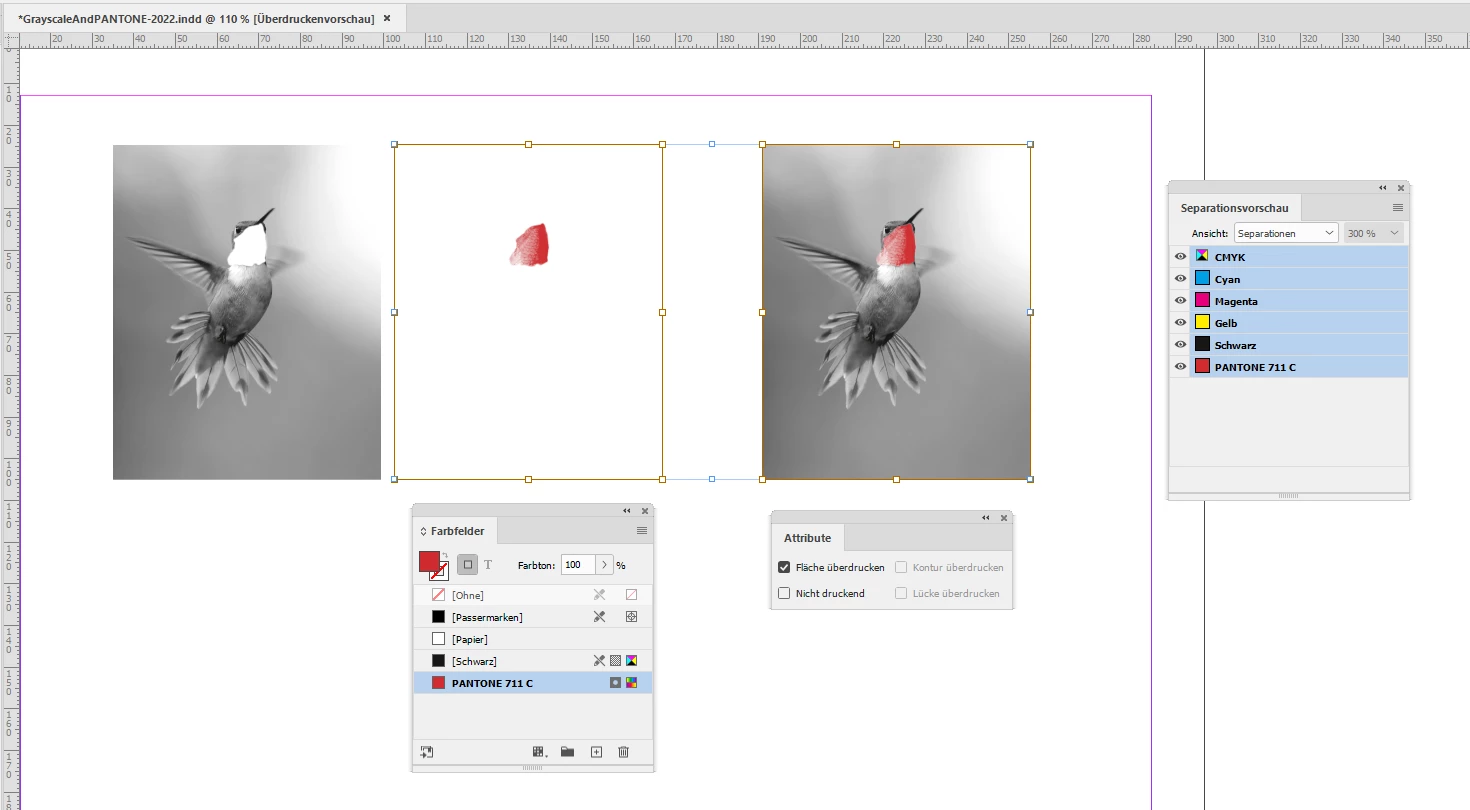 I use InDesign to create a newsletter that prints with black ink and one spot Pantone color [not rbr or cmyk]. I would like to be able to "paint" or highlight with that Pantone color on grey scale images. So, for example, I have a greyscale illustration of a rose. I would like to color the petals with 711C Pantone red, my selected spot Pantone color for that issue.