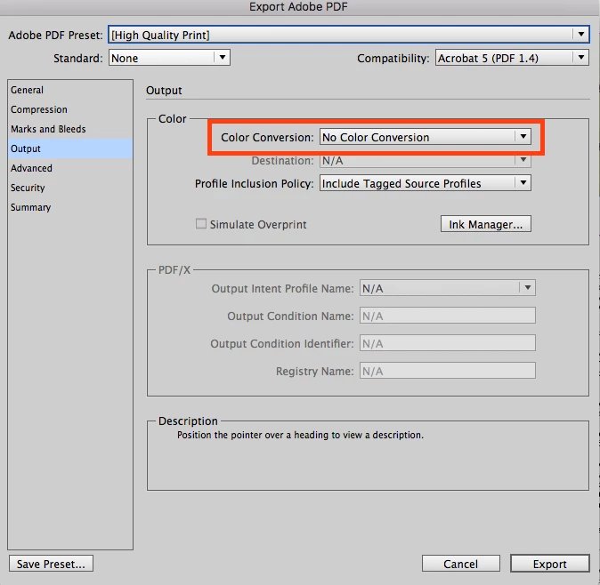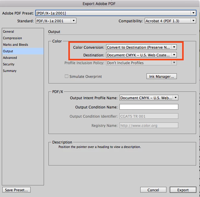 For final stage, we use PDF X-1a setting as per customer requirements. But the color has been changed to dark blue (picture 3) in PDF in PDF X-1/a settings.