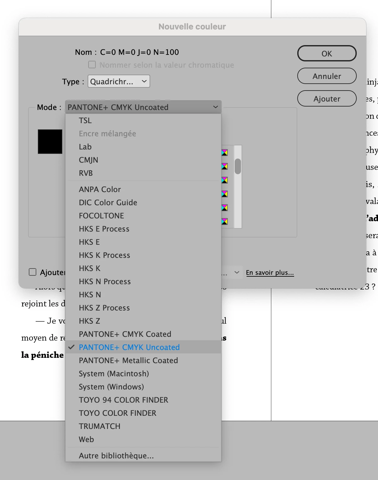 Si tu as une ancienne version d'InDesign, tu peux récupérer le fichier des catalogues Pantone : /Applications/Adobe InDesign 2022/Presets/Swatch Libraries/PANTONE+ Solid Uncoated.acb