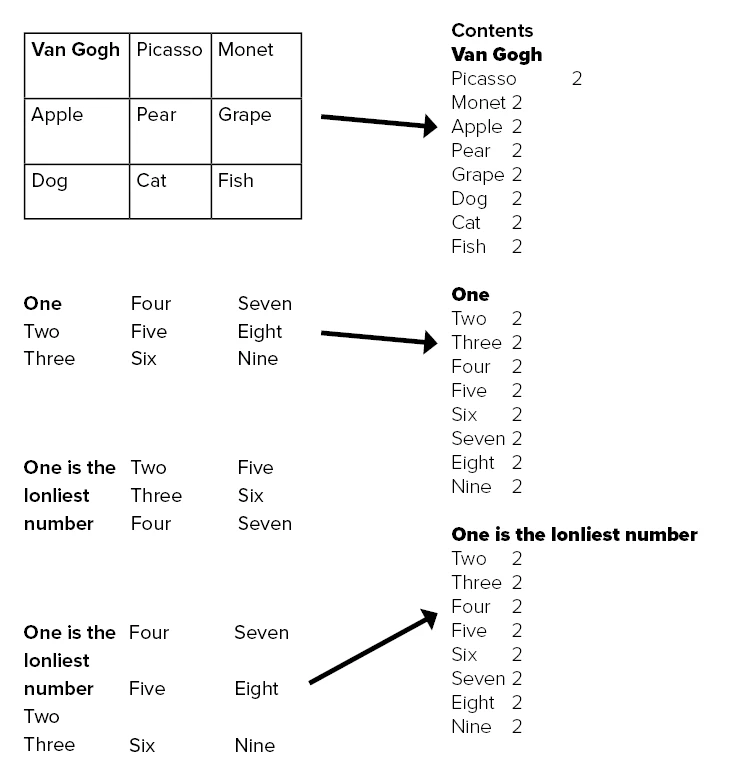 I'm trying to find a workaround for tables only being read row-by-row instead of column by column, so I've been experimenting with using a text frame with a paragraph style that splits into 3 columns: