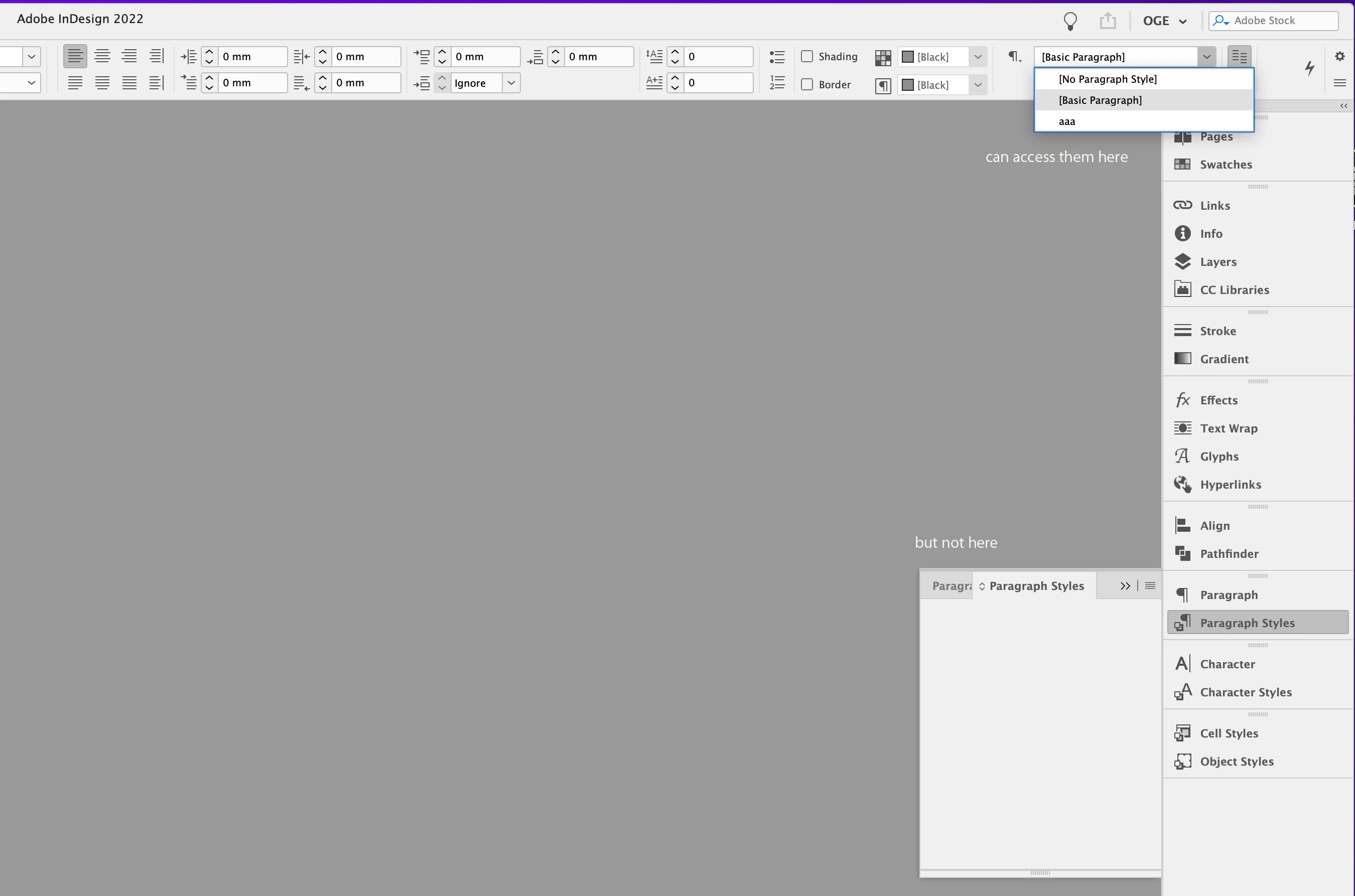 Note: Your custom paragraph style named "aaa" will be gone and you have to rebuild it when no document is open.