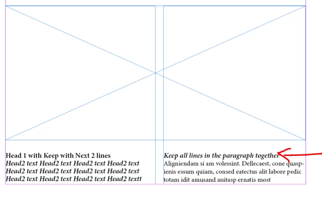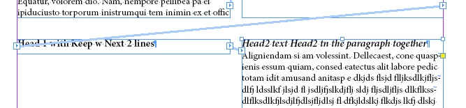 Here, I need to keep the (Head1 + Head2 + 2 lines of body text) together and in this case, the combined text should get pushed to the next available space/frame. I can't find any easy way to achieve this. Any suggestions would be helpful. (DEMO ATTACHED)