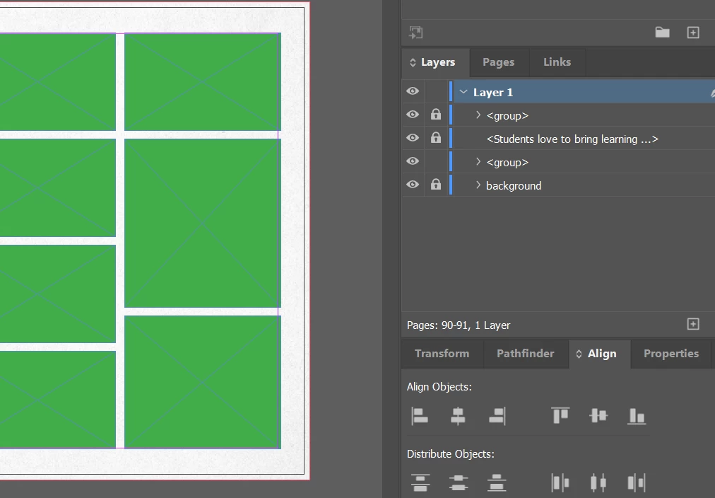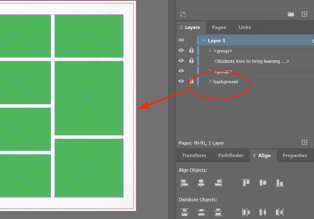 Checked layers panel for page numbers behind background