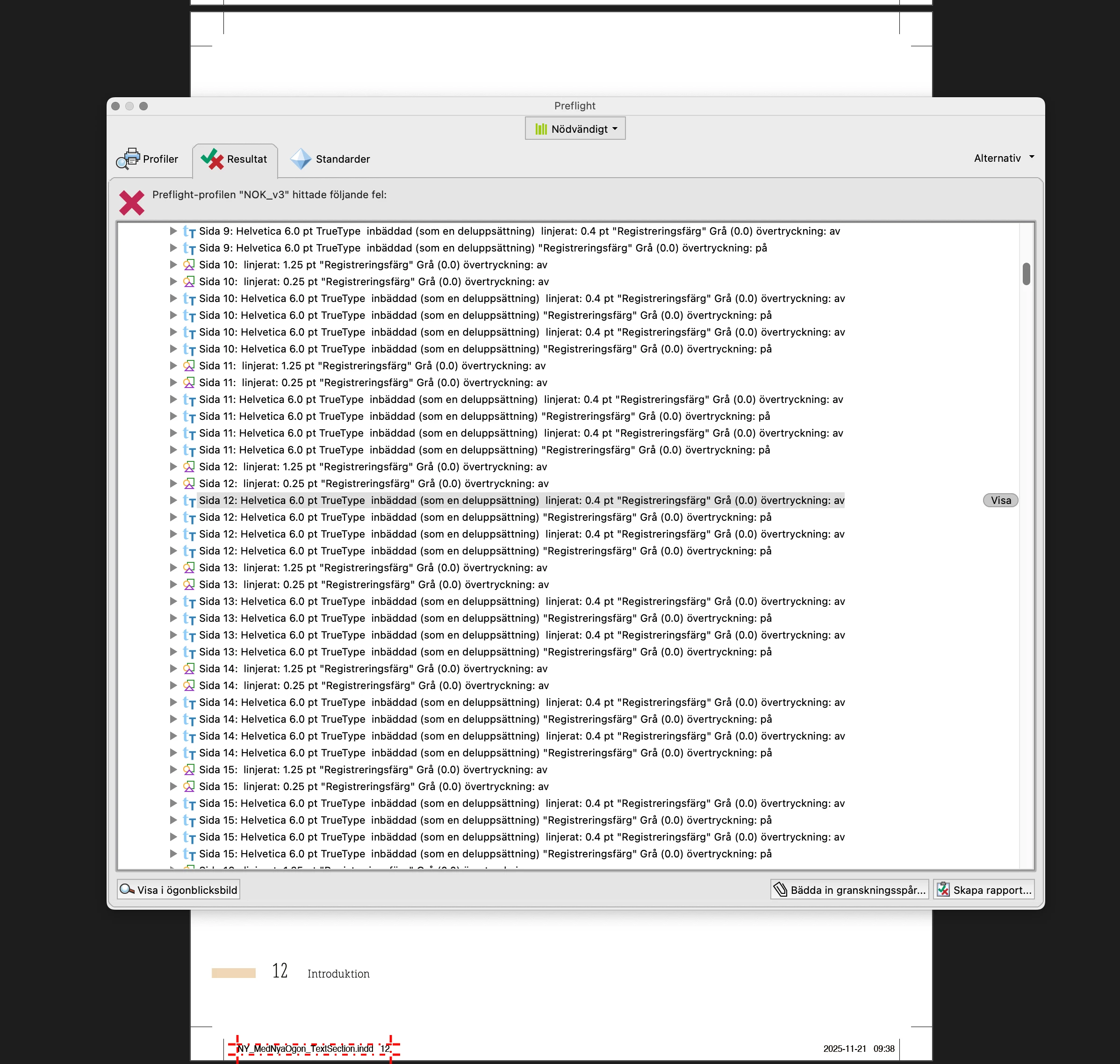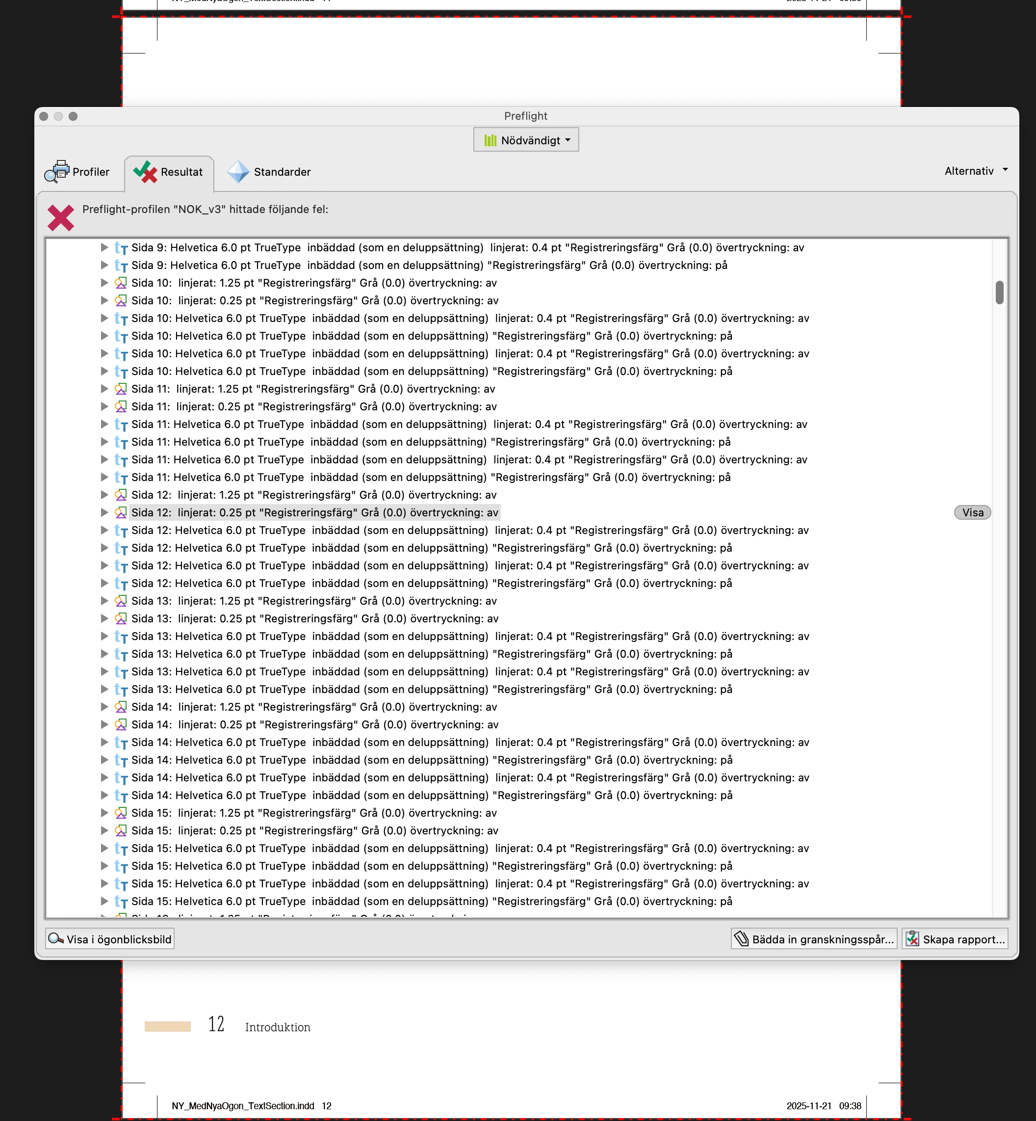 When exporting a InDesign-document to Adobe PDF/X-4:2010 for prepress/print, I get a warning about color separation inconsistency. When checking this out, it points to the ”cutting-marks” and to the document-info of the PDF (this is all outside the printing-area). It also warns about the system font Helvetica.