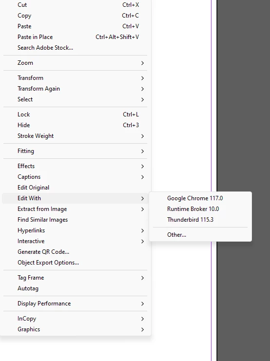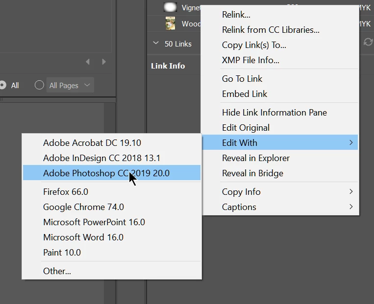 I am using Indesign cc 2017. My "edit with" right click menu does not have Photoshop listed. I have to click "other" and then locate photoshop.exe everytime I want to edit my image in photoshop. What should I do so that photoshop is always listed in my "edit with" context menu?