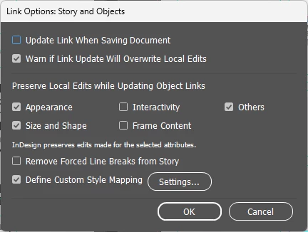 I have these link options checked but it doesn't seem to preserve them.