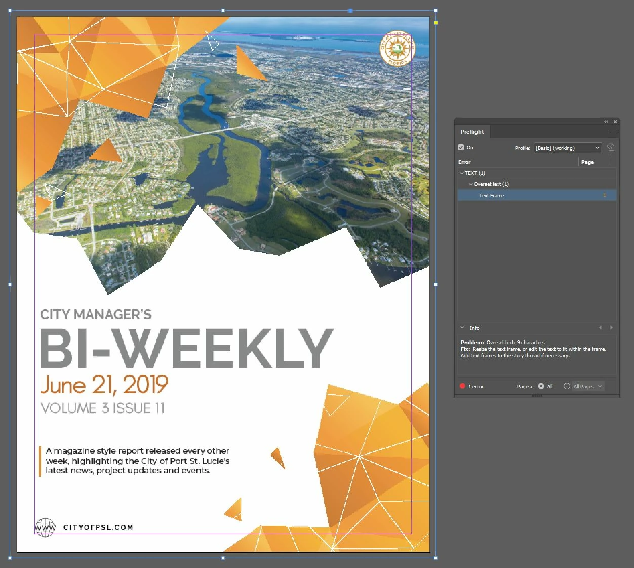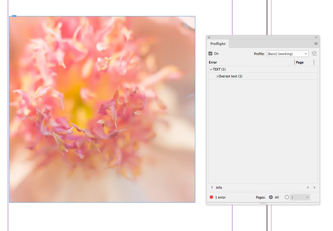 I have placed a PDF file in my InDesign document. The placed PDF is being seen as an overset text frame error in the preflight panel and I have no idea why...